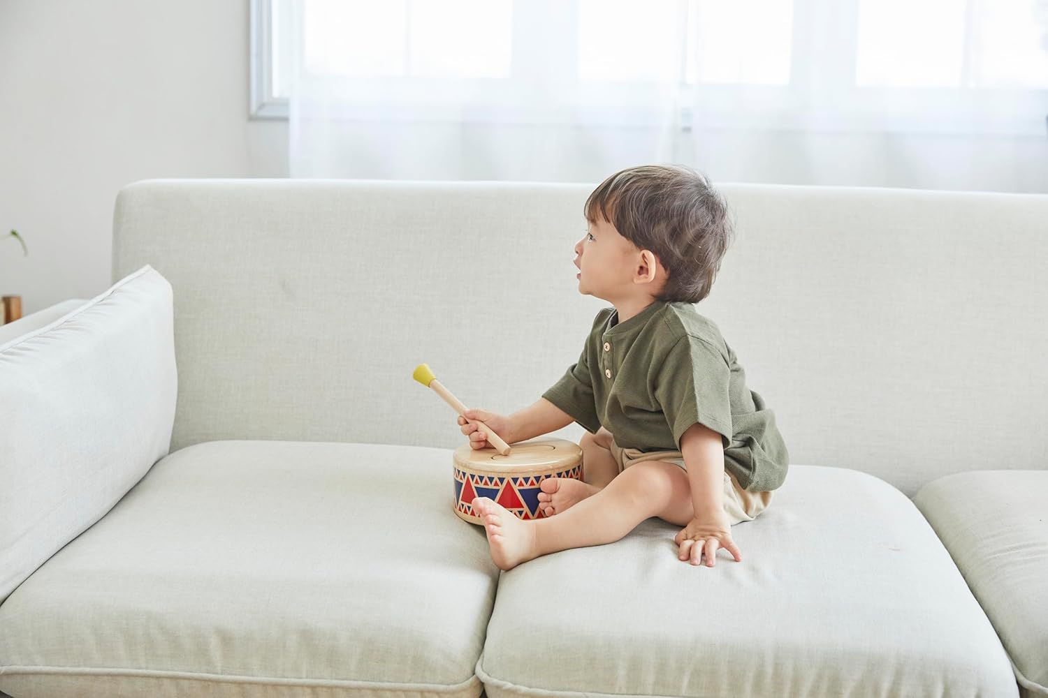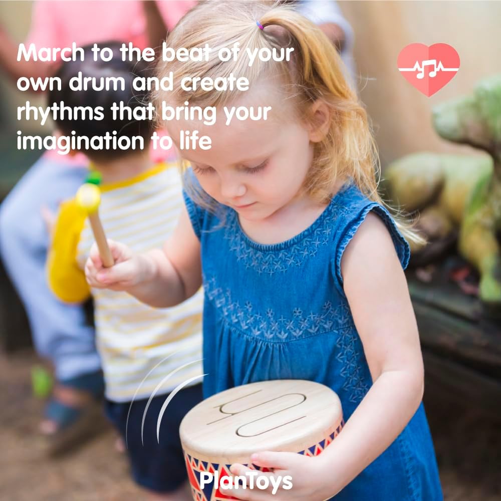 - REAL WOODEN DRUM FOR TODDLERS: Introduce your child to rhythm and sound with the PlanToys Solid Drum—a beautifully crafted wooden drum designed for toddlers. Made for ages 18 months and up, this kid’s musical toy encourages rhythm, beat recognition, and early auditory development through fun, hands-on play.