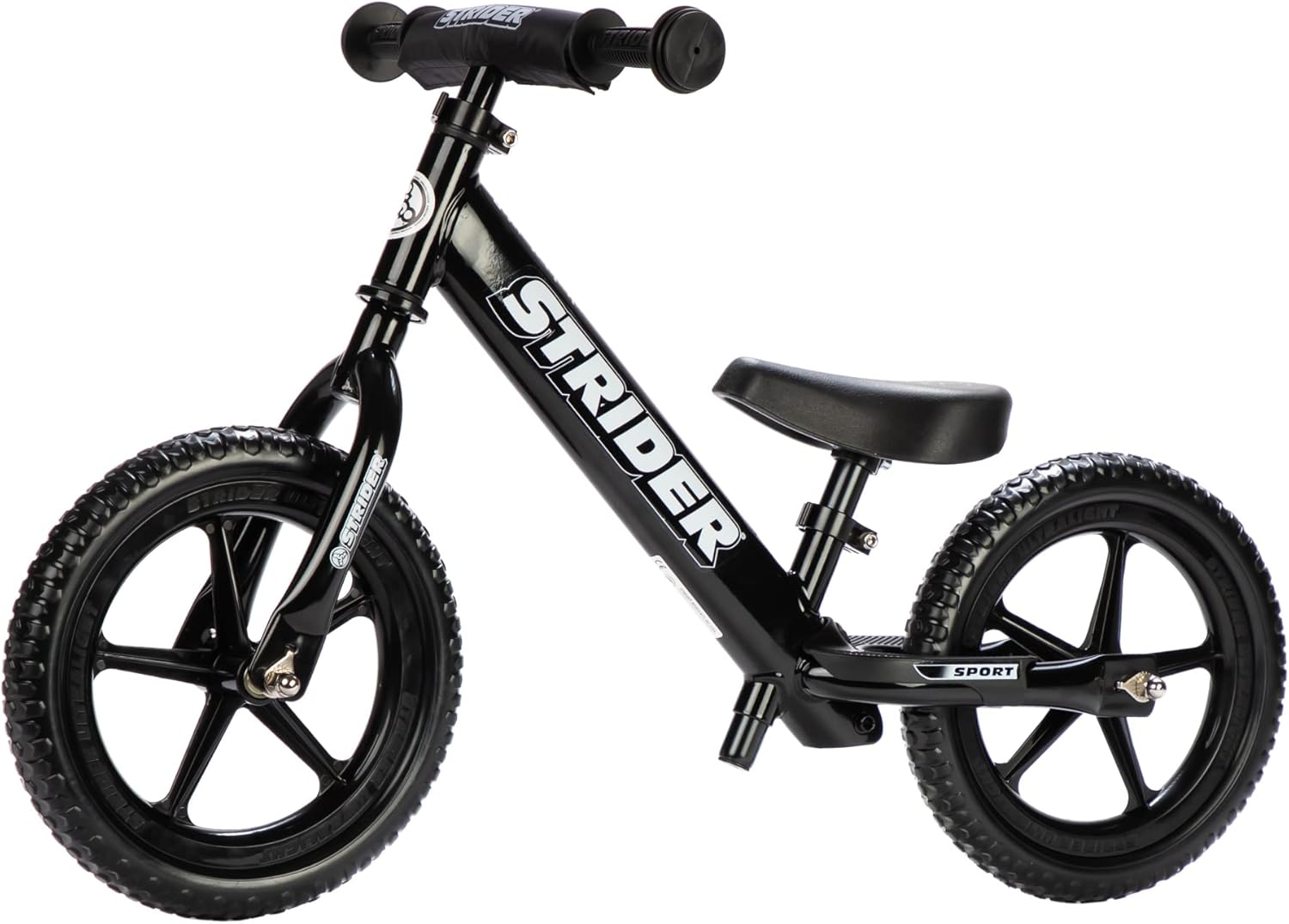 Strider 12” Sport Bike - No Pedal Balance Bicycle for Kids 1 to 4 Years - Includes Safety Pad, Padded Seat, Mini Grips & Flat-Free Tires - Tool-Free Assembly & Adjustments