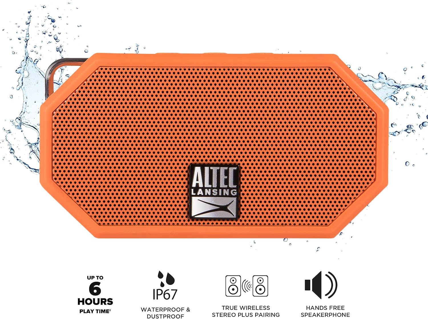 Altec Lansing Mini H2O - Waterproof Bluetooth Speaker, IP67 Certified & Floats in Water, Compact & Portable Speaker for Hiking, Camping, Pool, and Beach,Orange