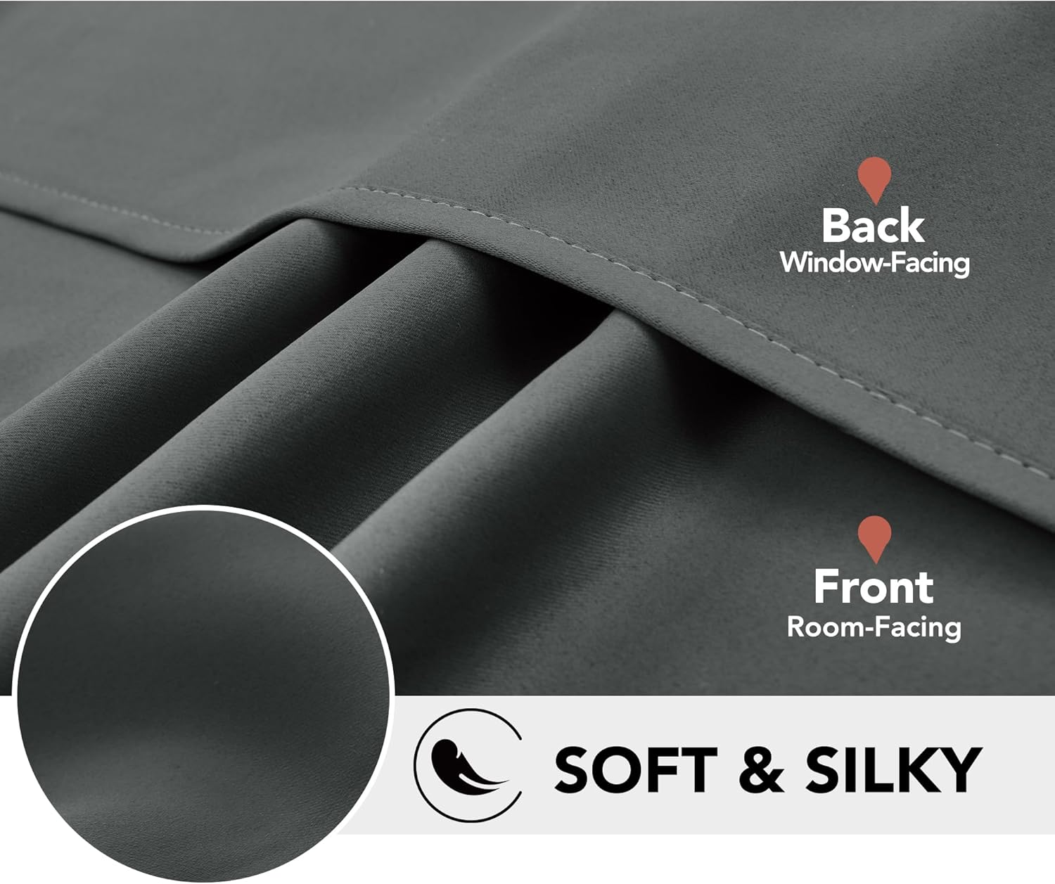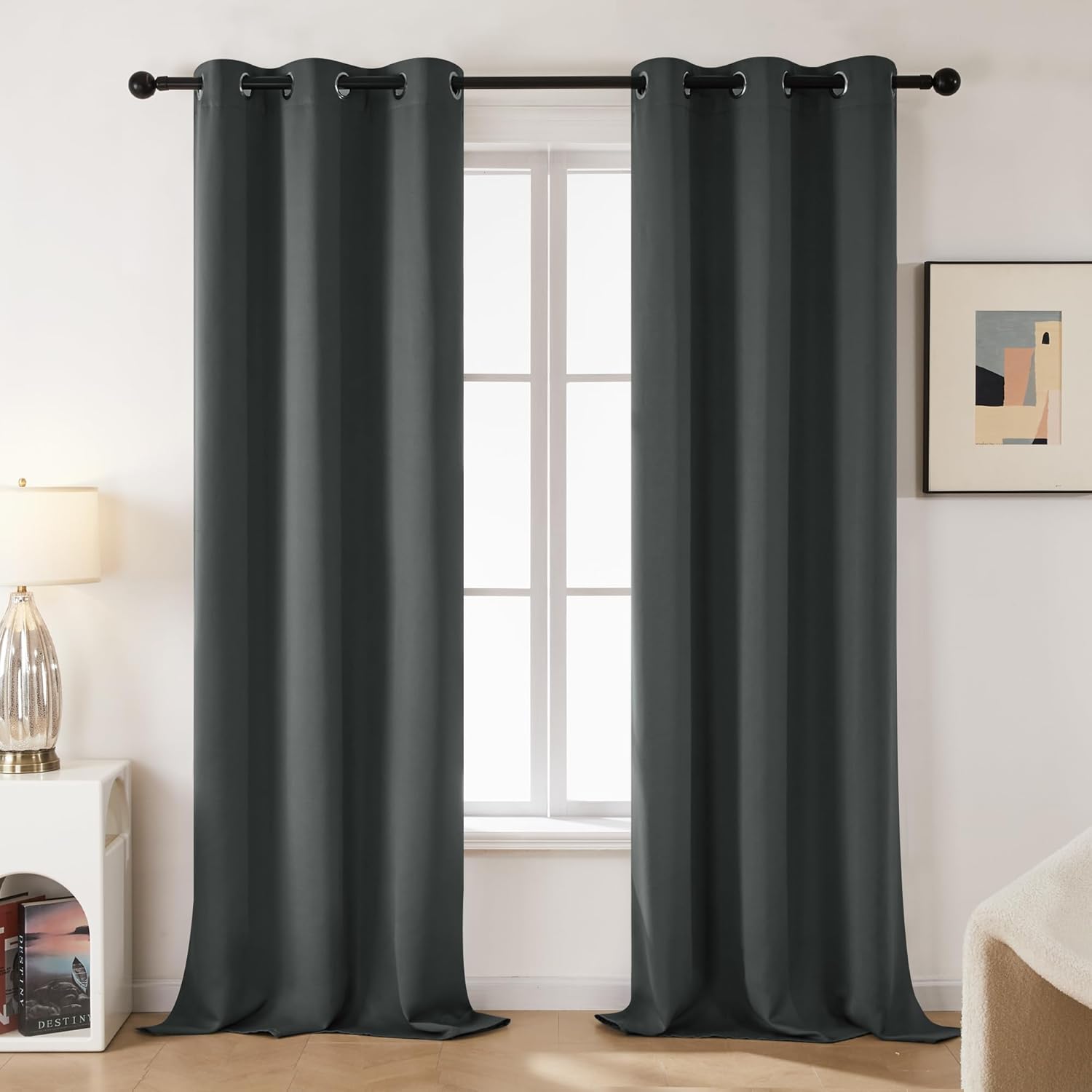 Deconovo Blackout Curtains, Room Darkening Thermal Insulated Window Drapes, Noise Reducing, Grommet Top, 2 Panels 42W x 84L Inch Machine Washable for Bedroom Living Room Nursery Dark Grey