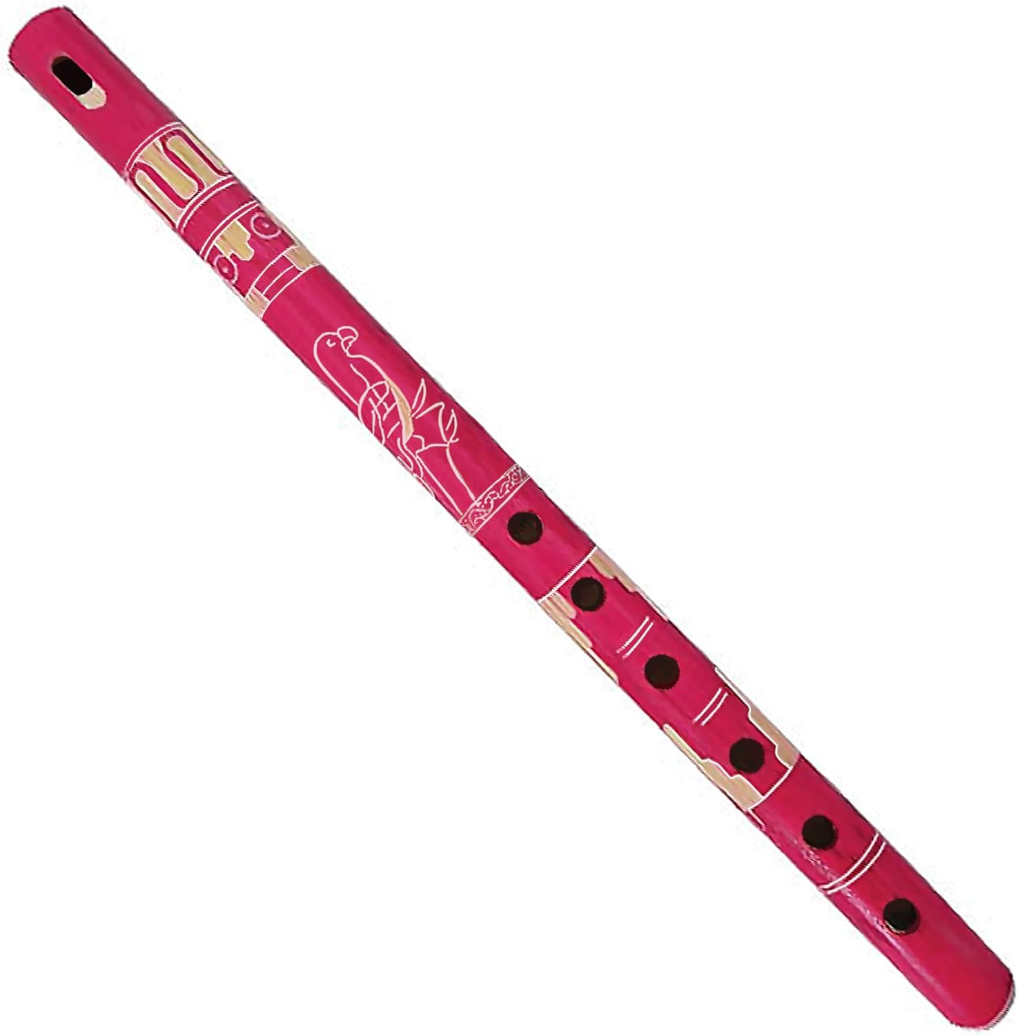 Mia Jewel Shop - Handmade Colored Bamboo Wooden Flute | Tribal Nature Pattern | Native Recorder for Beginners, Meditation & Music Lovers (Hot Pink)