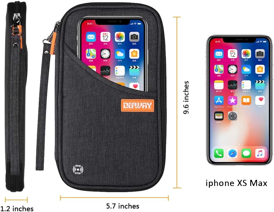 - THOUGHTFUL OUTSIDE STORAGE: The pocket is conveniently placed on the front of the passport wallet, which is great for storing your phone or any other frequently used items. The pocket slots are designed to be wide enough, enabling them to accommodate large cell phones. And it comes with a removable wristlet strap, You can keep everything at your fingertips, ensuring that your items are not only handy but also highly convenient to access at all times.