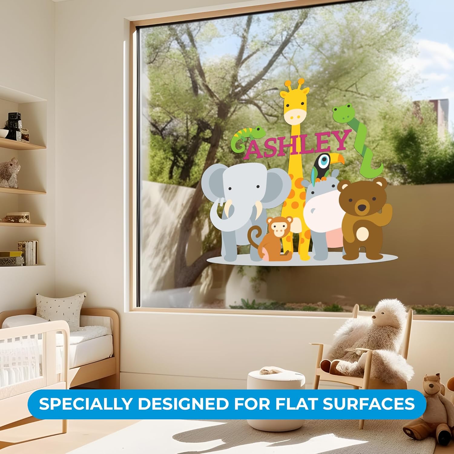 CRYPTONITE Personalized Name Jungle Animals Vinyl Wall Decor I Nursery Wall Decal for Baby Boy & Girl Decoration I Stickers for Kids I Multiple Options for Customization (A. Jungle Animals)