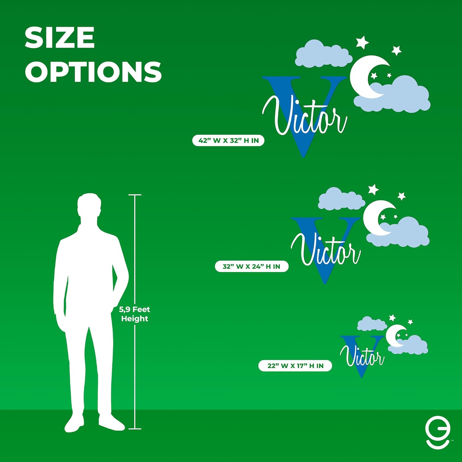 e-Graphic Design Inc Custom Name & Initial Moon Clouds Stars - Baby Boy - Nursery Wall Decal for Baby Room Decorations - Mural Wall Decal Sticker for Home Children's Bedroom (Wide 32" x 24" Heigh)