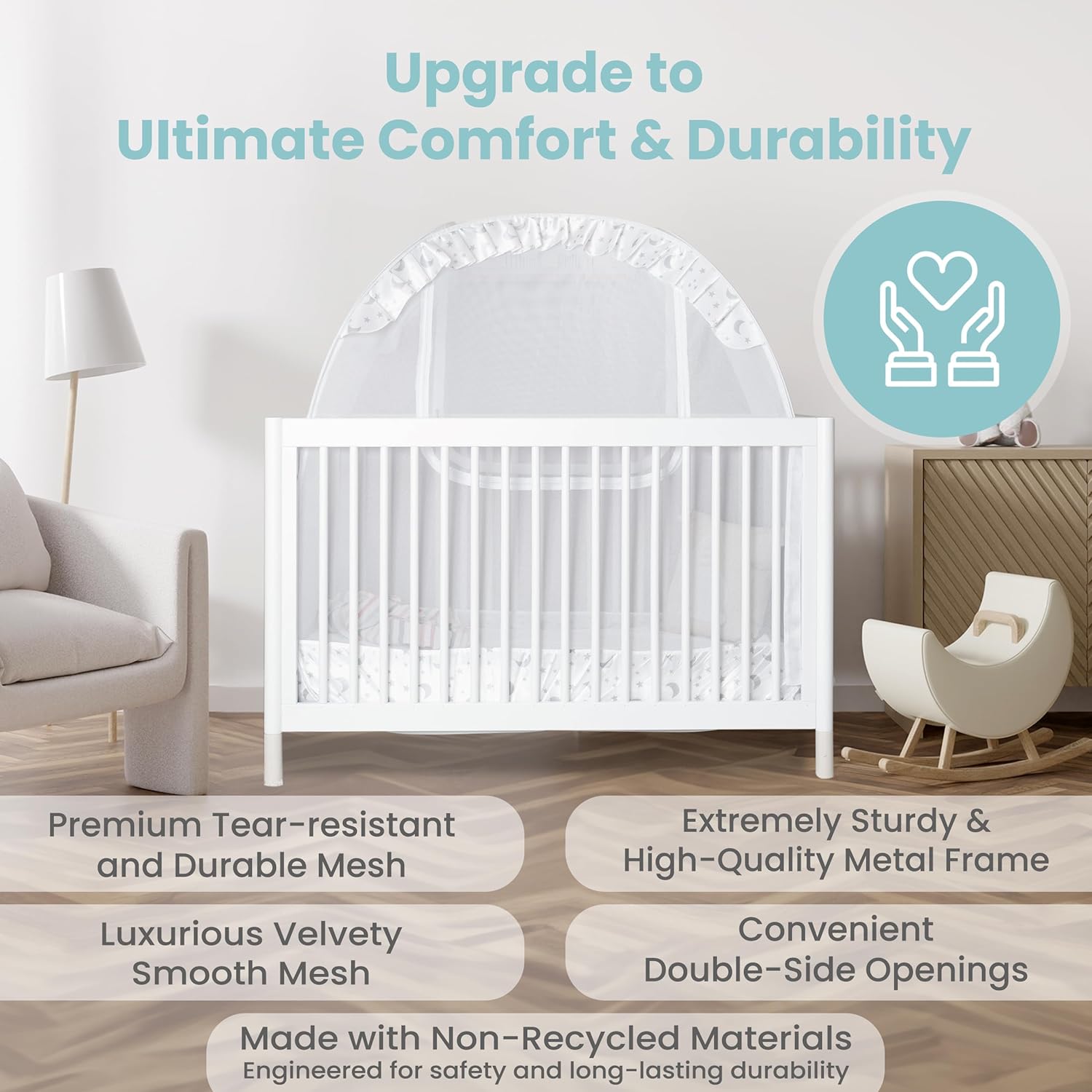 Premium Pop Up Crib Tent, Crib Cover to Keep Baby from Climbing Out, Prevent Falls and Mosquito Bites, Safety Net Canopy - Sturdy & Stylish Infant Topper, Mosquito Net