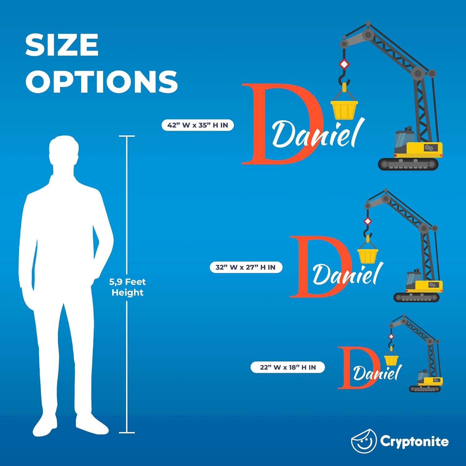 Custom Toddler Construction Crane Wall Decal I Personalized Name & Initial I Nursery Wall Decal for Toddler Room Decorations I Wall Sticker for Bedroom Wide 42"x35" Height (Shown) (Large)