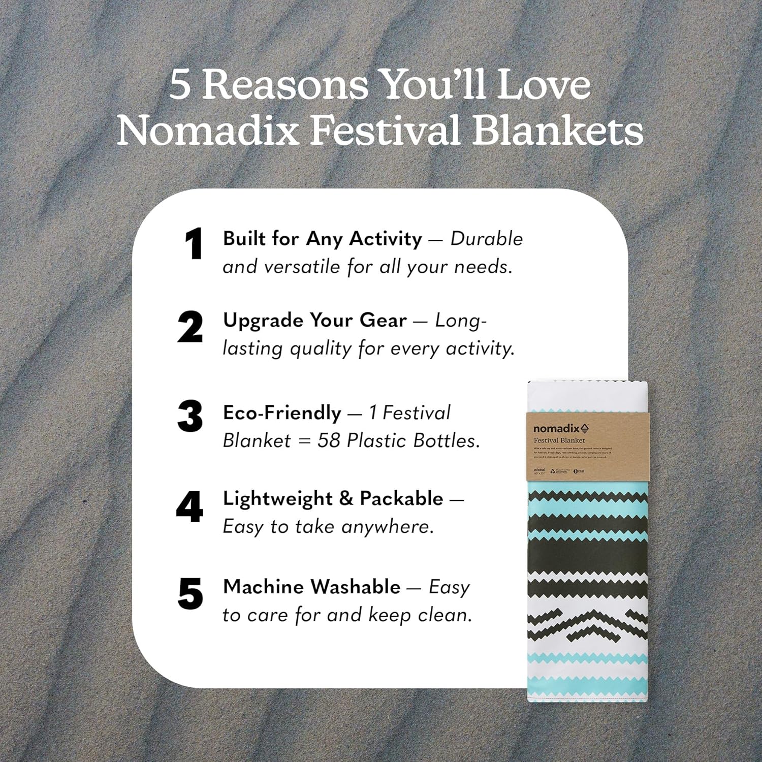 Nomadix Festival Blanket - Perfect for Picnics, Camping, & Lawn Seating - Plush Top & Water Resistant Base - Made with Post Consumer Recycled Materials - Agua Blue - 60x70 in