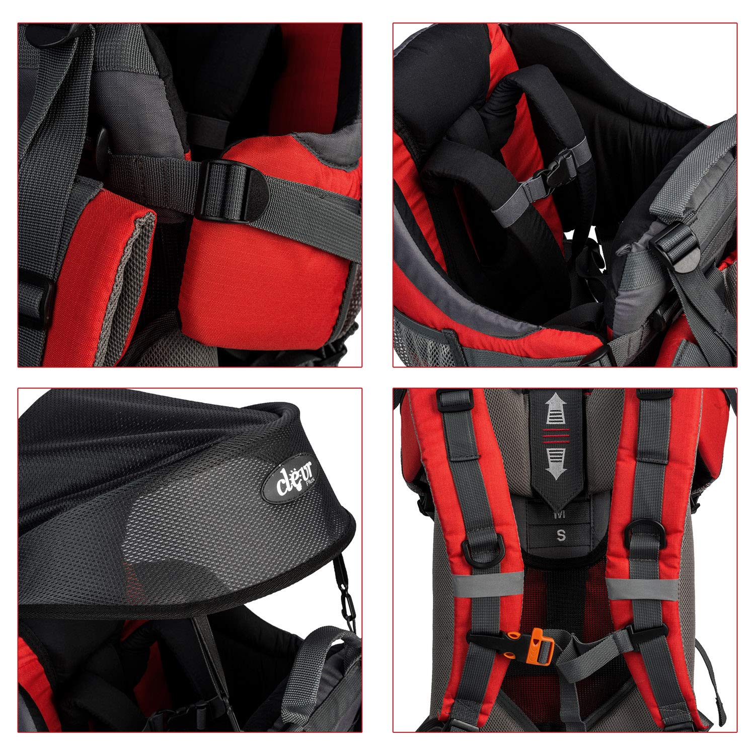 ClevrPlus Canyonero Camping Baby Backpack Hiking Kid Toddler Child Carrier with Stand and Sun Shade Visor, Red