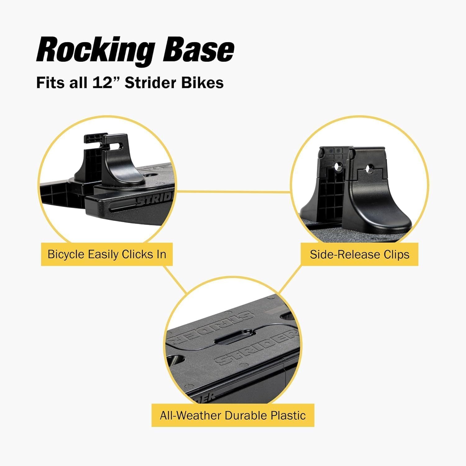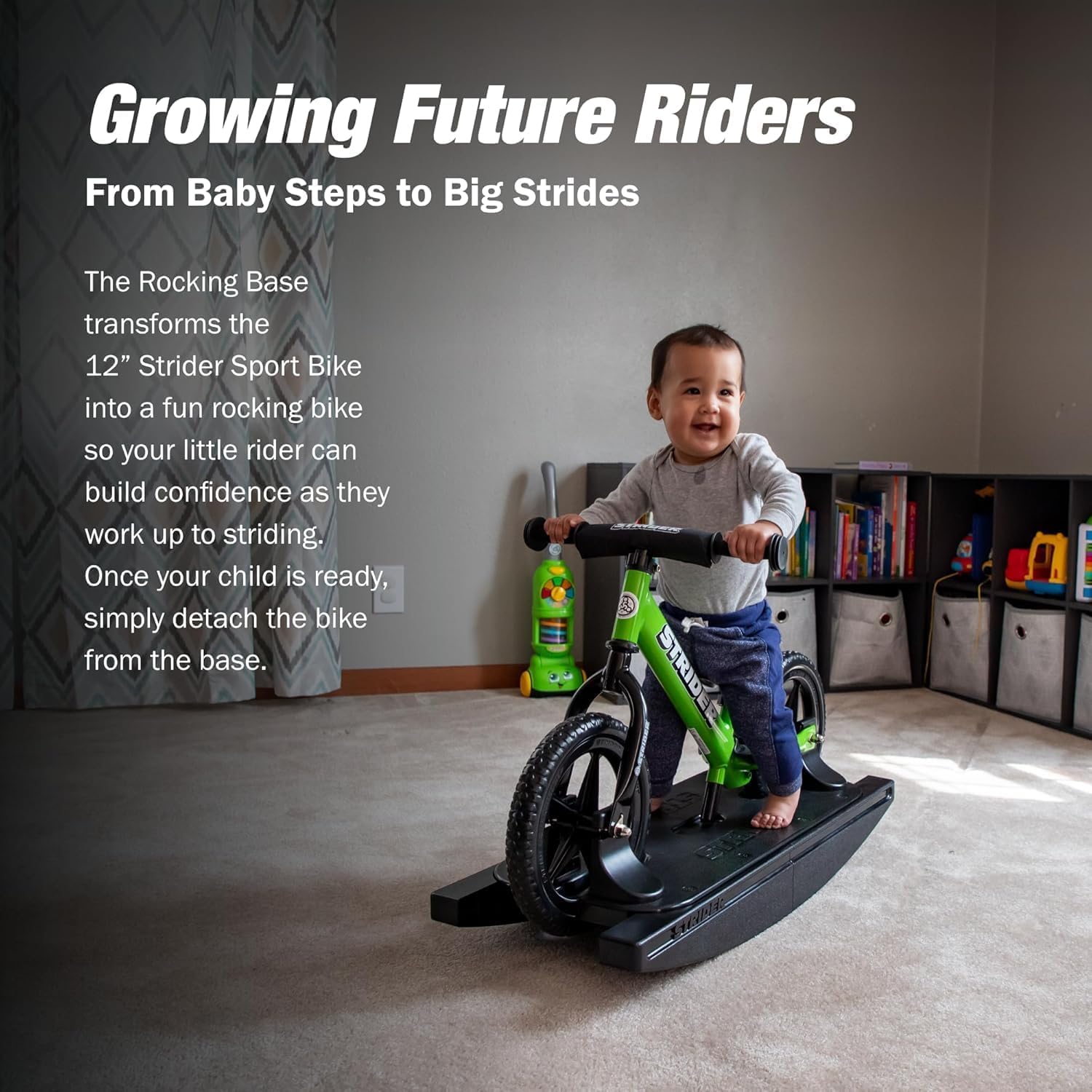 - 2-IN-1 ROCKING BIKE - The Rocking Base transforms the 12" Strider Sport Bike into a fun rocking bike so your little rider can build confidence as they work up to striding. Once your child is ready, simply detach the bike from the base