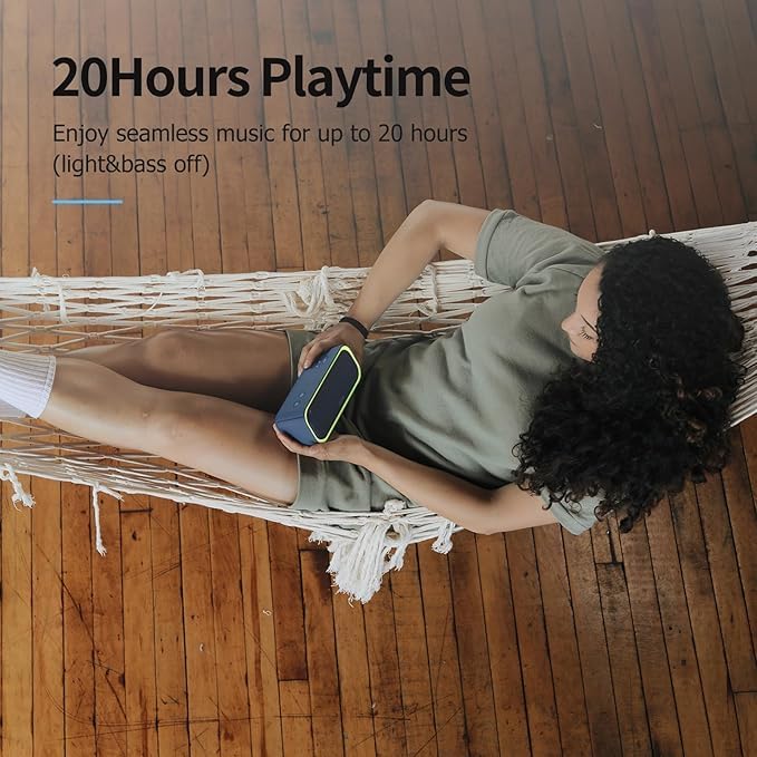 - Nonstop Music: Got outdoor plans? This lightweight, portable speaker keeps the music going all day and night! With a powerful battery offering up to 20 hours of continuous playtime, it’s your go-to companion for camping, hikes, beach days, or late-night gatherings. Never miss a beat—wherever you go!