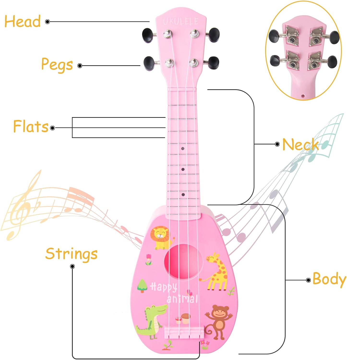YOLOPARK 17" Kids Toy Guitar for Girls Boys, Mini Toddler Ukulele Guitar with 4 Strings Keep Tones Can Play for 3, 4, 5, 6, 7 Year Old Kids Musical Instruments Educational Toys for Beginner (Pink)