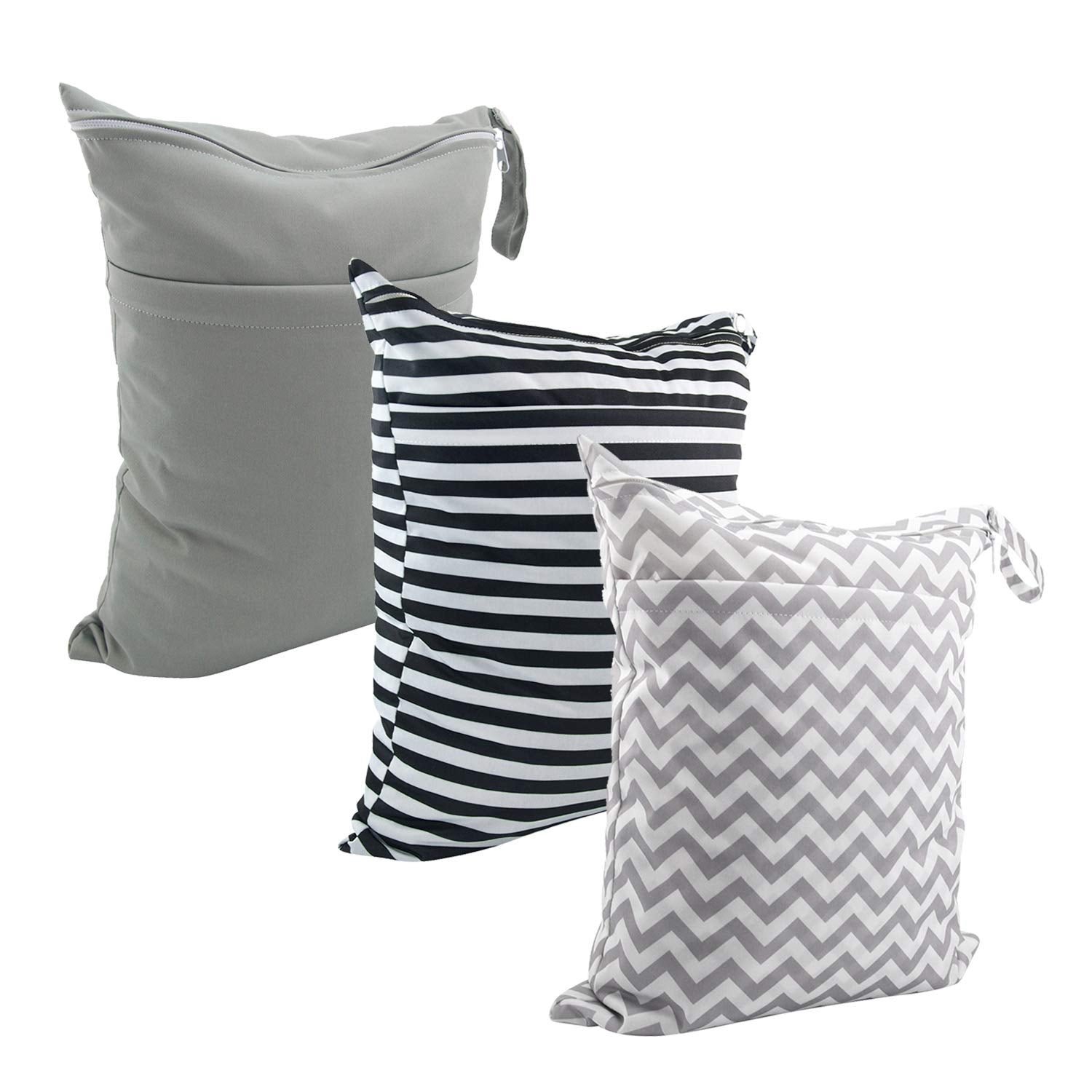 ALVABABY 3pcs Baby Cloth Diaper Wet Dry Bags Waterproof Reusable with Two Pockets Travel Beach Pool Daycare Soiled Baby Items Yoga Gym Bag for Swimsuits or Wet Clothes M Size 3L-ZM01