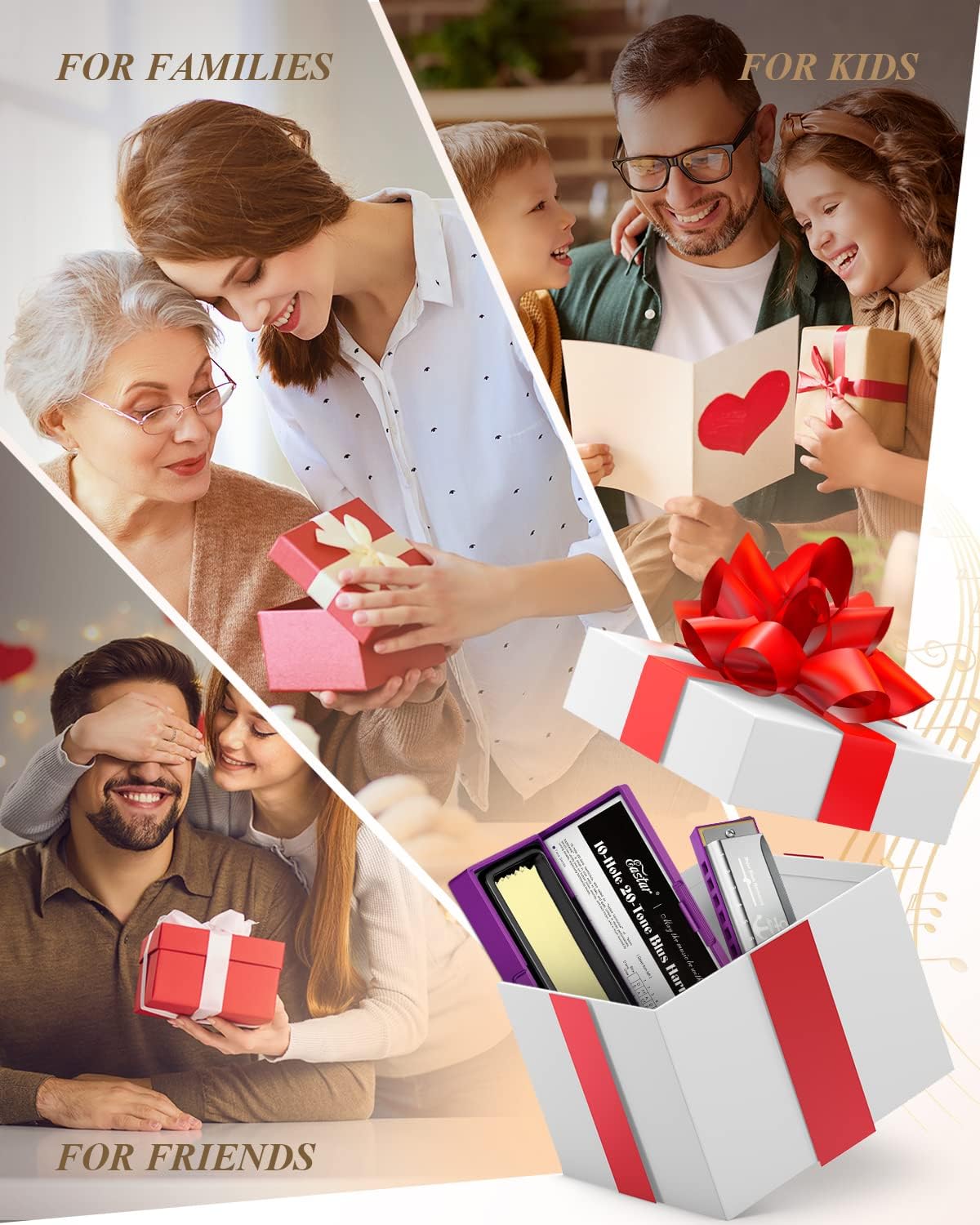 - ♬🎄 HUMANIZED DESIGN - ABS edging is safe to hands, easy to clean and maintain. Airflow splitter and the built-in airflow splitter in the harmonica combs are easy to keep stable airflow, better for smoothly playing.