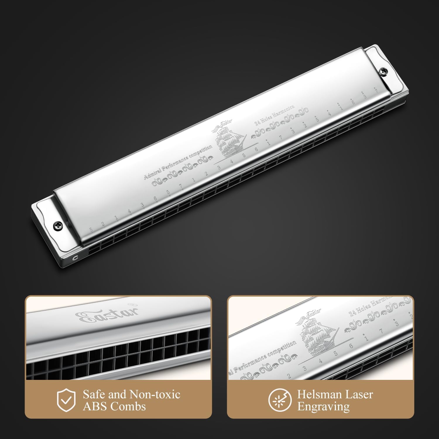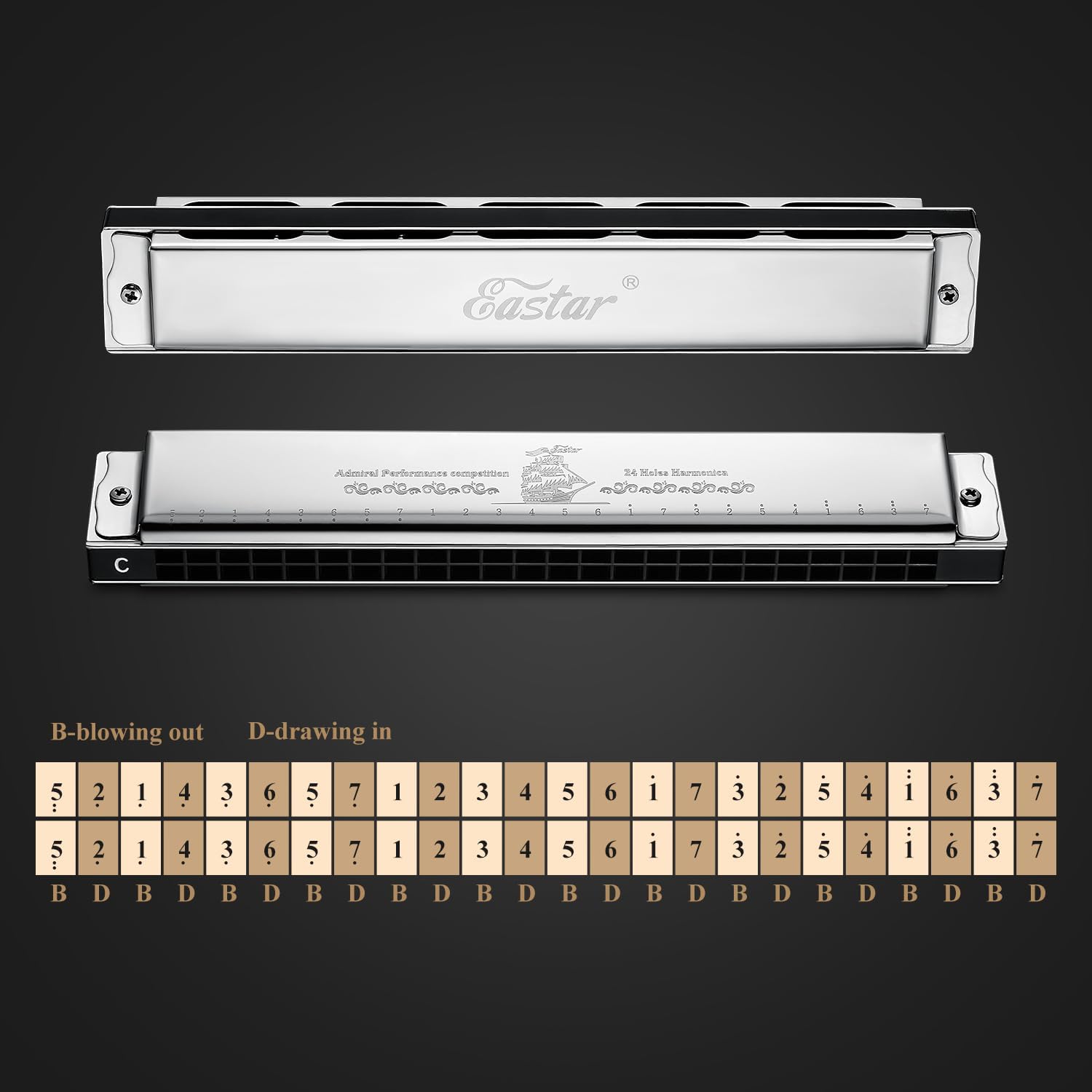 - ♫❤️ SOUNDS OF NATURE - Eastar Admiral 24 Holes Tremolo Harmonica is typically designed for professional harmonica performance and competitions. Its timbre, tuning and sound quality are up to the level of the recording studio, with vivid and accurate sound.