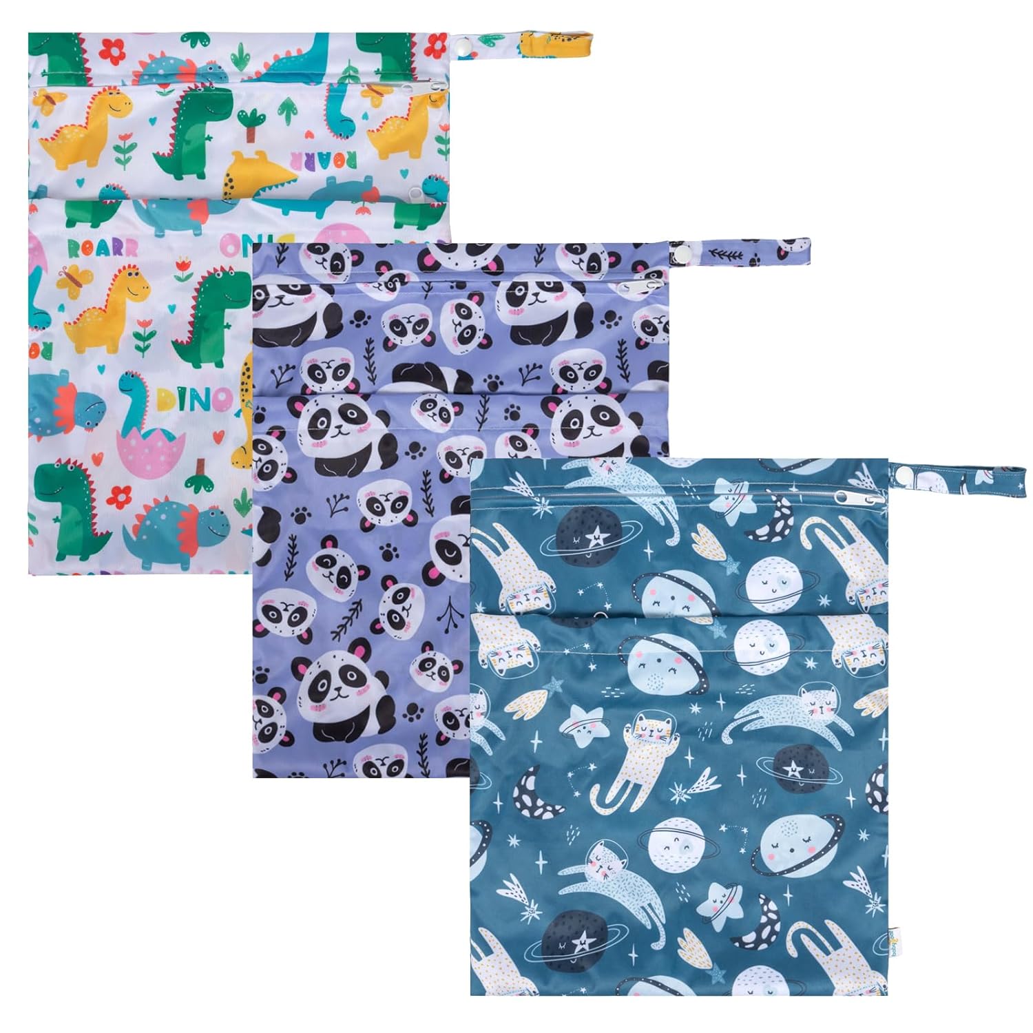 - Double-Pocket Design with Snap Handle: Each wet bag contains two pockets, which comes with two zip closures to ensure that nothing will drop out of the bag and better to keep the clean and dirty items separately. With the snap handle design, you can unbutton the haddle and easily hang the bag on the stroller or door knobs, towel rod ect. anywhere you want.