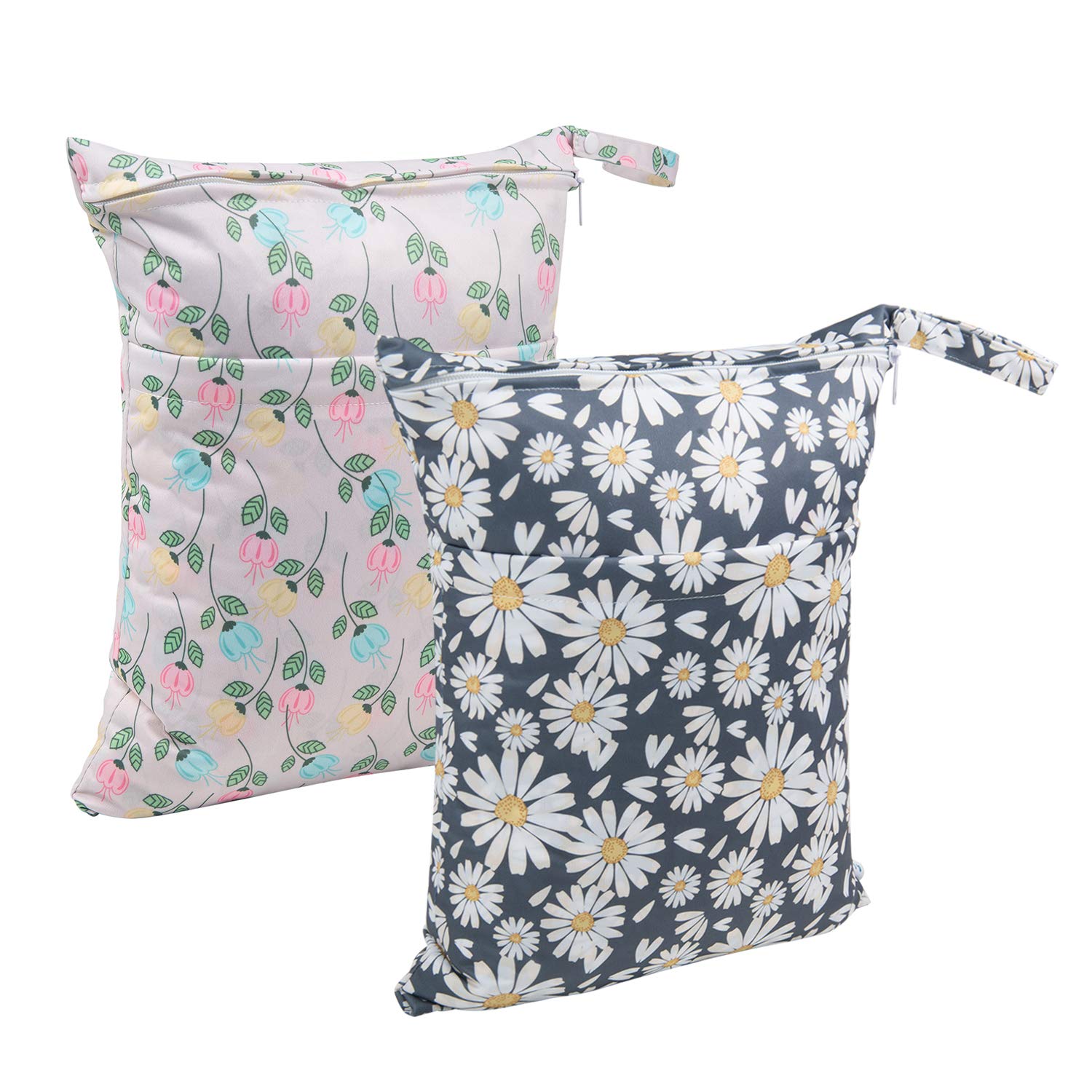 ALVABABY 2pcs Cloth Diaper Wet Dry Bags Waterproof Reusable with Two Zippered Pockets Travel Beach Pool Daycare Soiled Baby Items Yoga Gym Bag for Swimsuits or Wet Clothes L0821