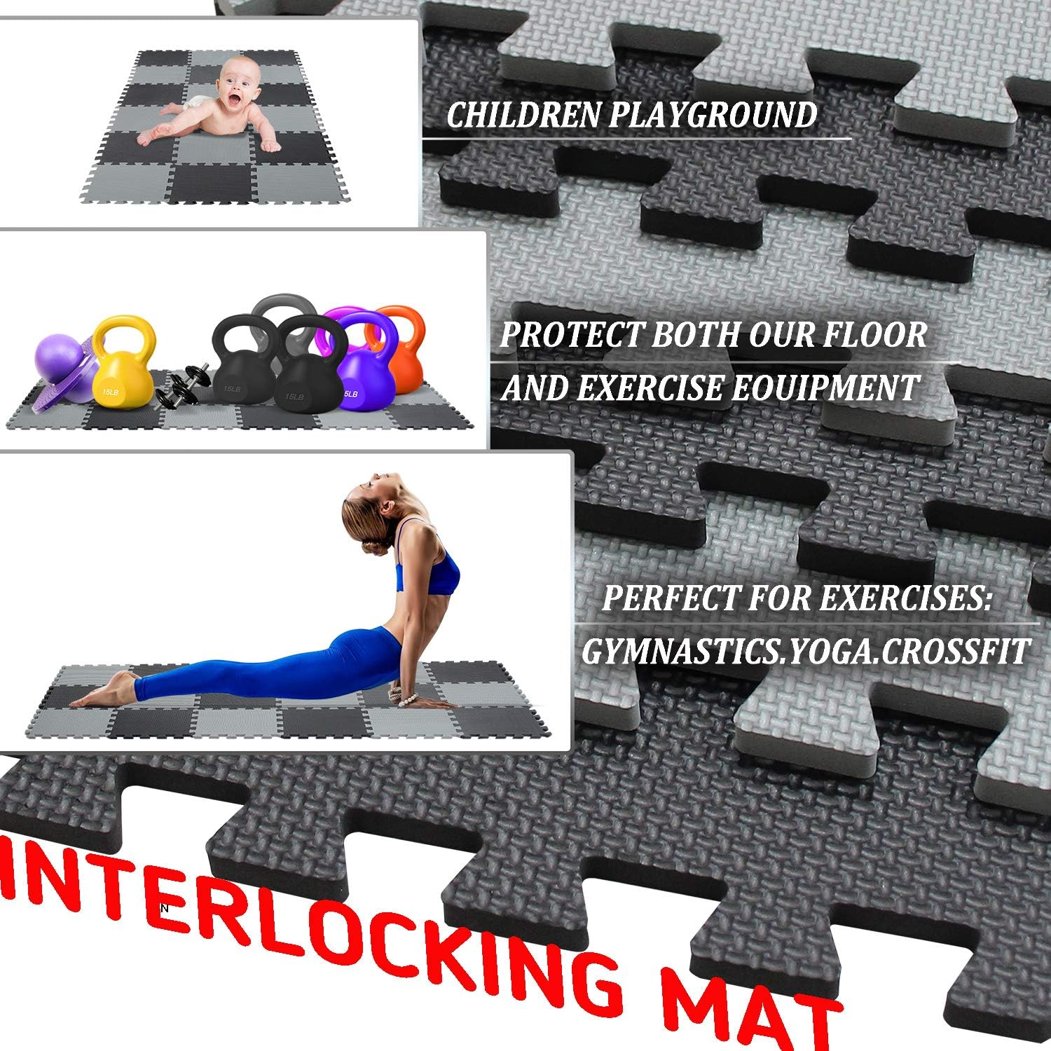 - Cover area: 86CM x 170CM( ±1CM) / approx. 1.46 SQ. M,one sets 18pcs,(300mm x 300mm x 10mm). Package includes 9 BLACK and 9GRAY interlocking foam tiles, making it a perfect workout and training accessory.