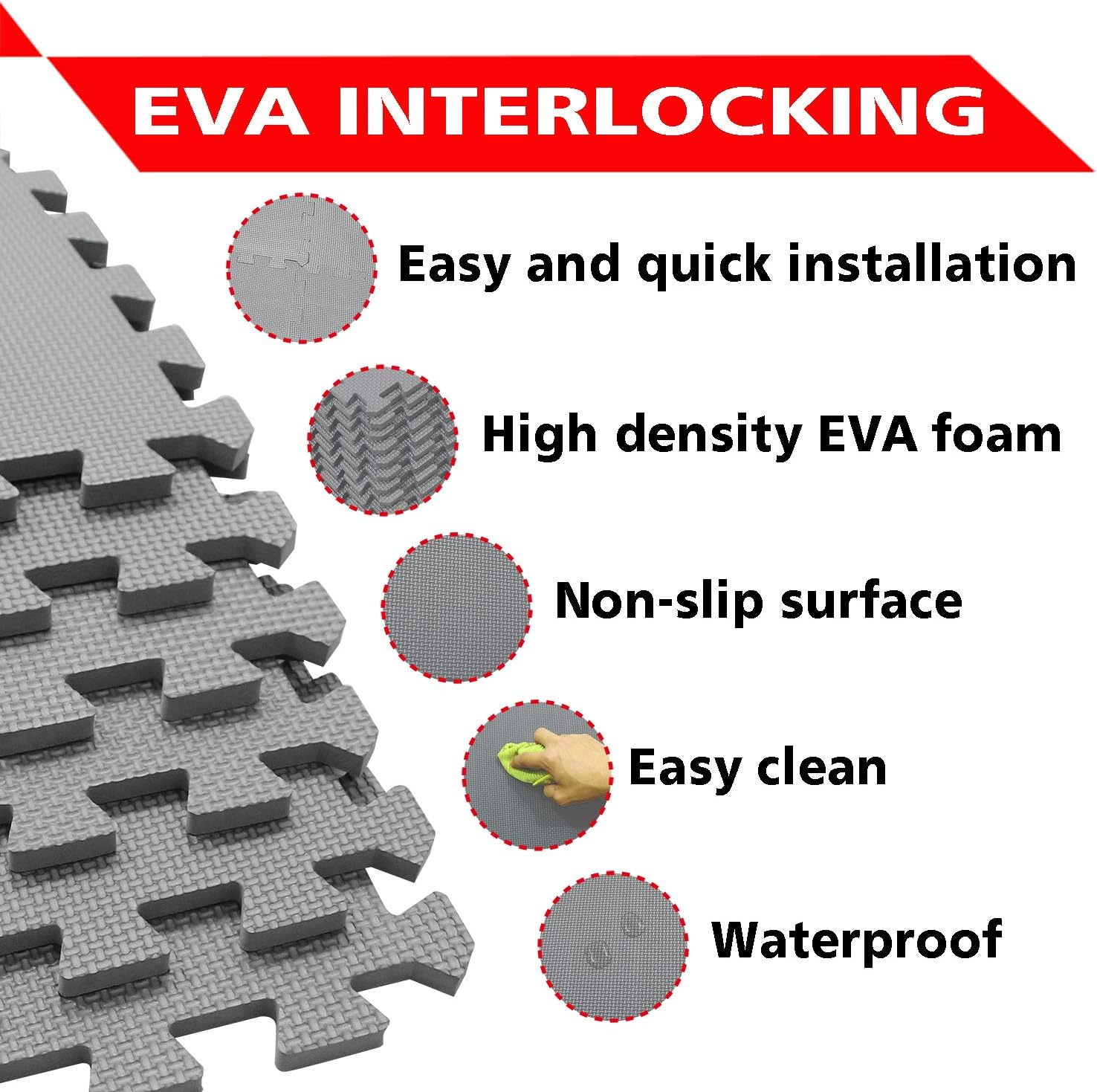 - Cover area: 86CM x 170CM( ±1CM) / approx. 1.46 SQ. M,one sets 18pcs,(300mm x 300mm x 10mm). Package includes 6 WHITE,6BEIGE and 6BROWN interlocking foam tiles, making it a perfect workout and training accessory.