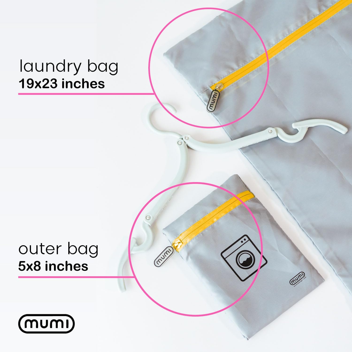 MUMI Travel Laundry Bag – Mesh Laundry Bags for Delicates with Hanger & Pouch | Delicates Bag for Washing Machine | Large Laundry Net Bag for Travel, Gym, Baby Clothes, and More (Grey)