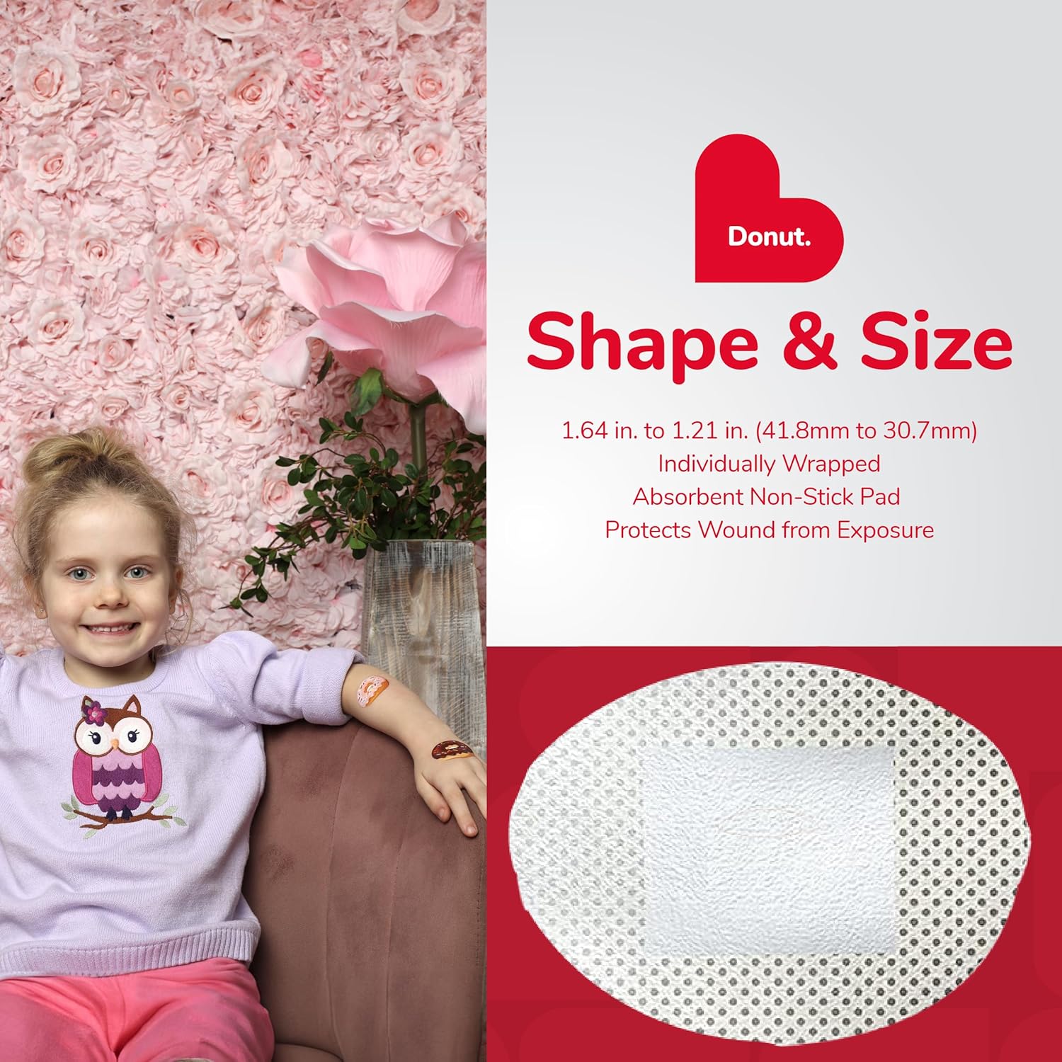 - DONUT BANDAGES: This 50 piece tin of adorable and delicious looking doughnut bandages is great for putting a smile on kids' faces while protecting wounds such as cuts, scrapes, and burns, and come in 3 assorted colors; sticky bandages are perfect for kids and adults alike, and also for school nurses and pediatric doctors