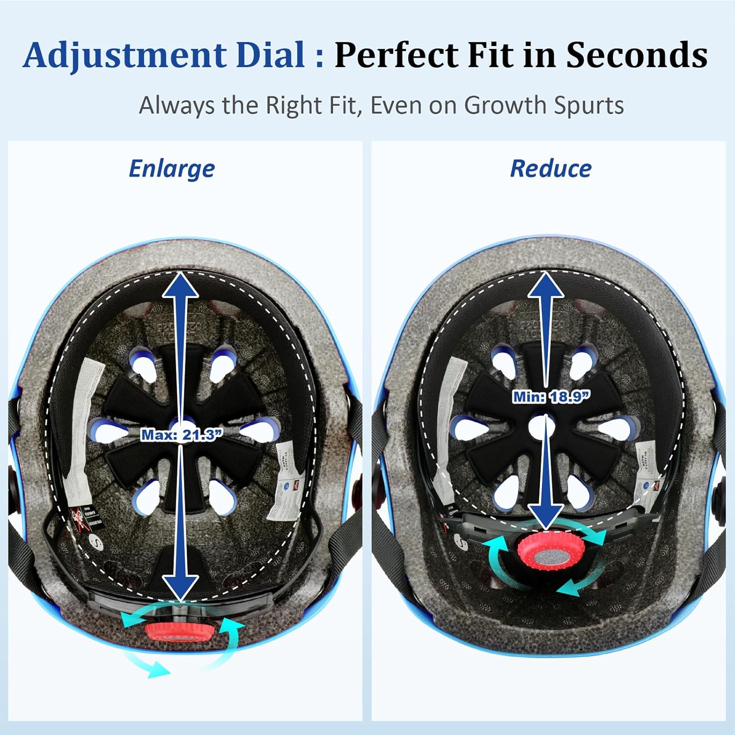 - 【Adjustable Kids Toddler Helmet Set 】- The helmet for kids has an adjustable knob in the back, can easily adjust to a perfect fit for kids, Helmet head circumference: 48-54 cm/18.9"-21.3", suitable for toddlers aged 3-5 and kids aged 5-8, one bike helmet set can be used for a few years