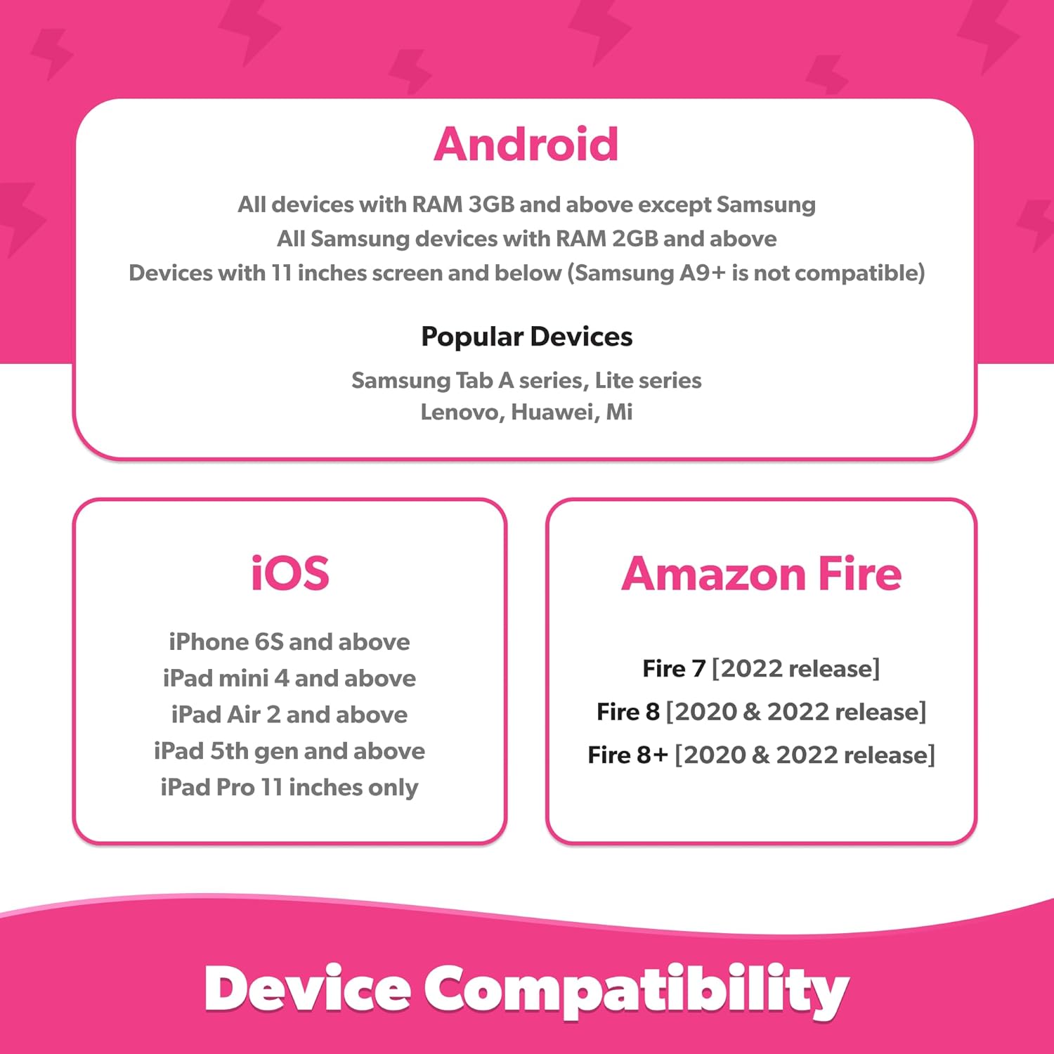 - Compatible Devices: Android: RAM 3GB+ (except Samsung), Samsung devices RAM 2GB+, screens 11" and below (A9+ not compatible); iOS: iPhone 6S+, iPad mini 4+, iPad Air 2+, iPad 5th gen+, iPad Pro 11"