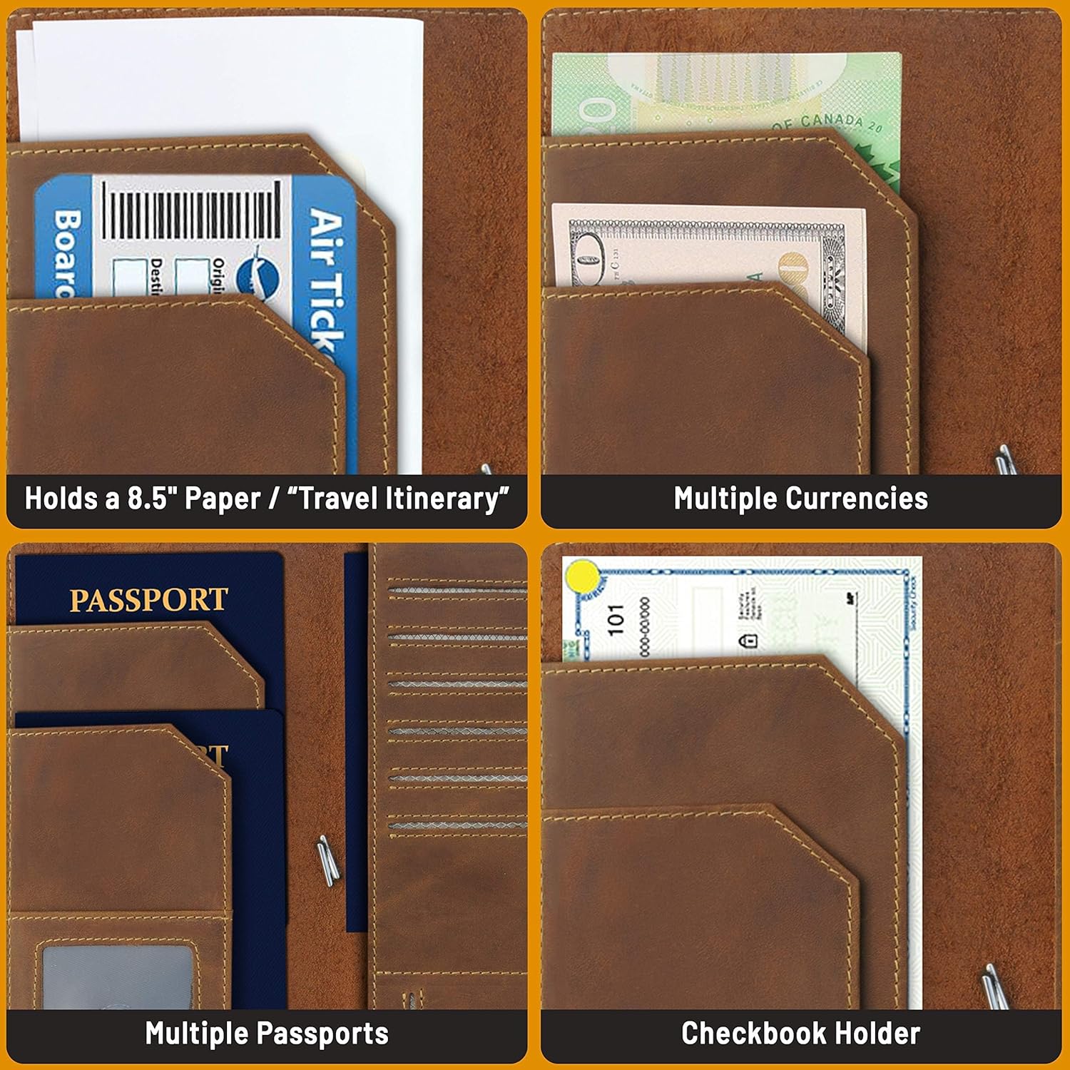 - [Designed for Real-World Travel – All-in-One Organizer]: Whether you're flying solo or with the whole family, this folding leather travel wallet keeps everything in place. With room for multiple passports, boarding passes, cards, IDs, travel cash, and even a pen, it's the ultimate leather passport holder for men and women who want to move freely without the mess