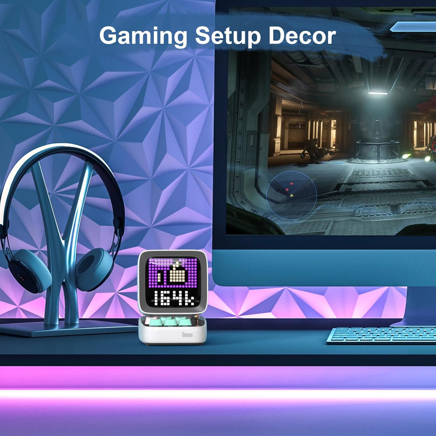 Divoom Ditoo Pixel Art Gaming Portable Bluetooth Speaker with App Controlled 16X16 LED Front Panel, Also a Smart Alarm (White)
