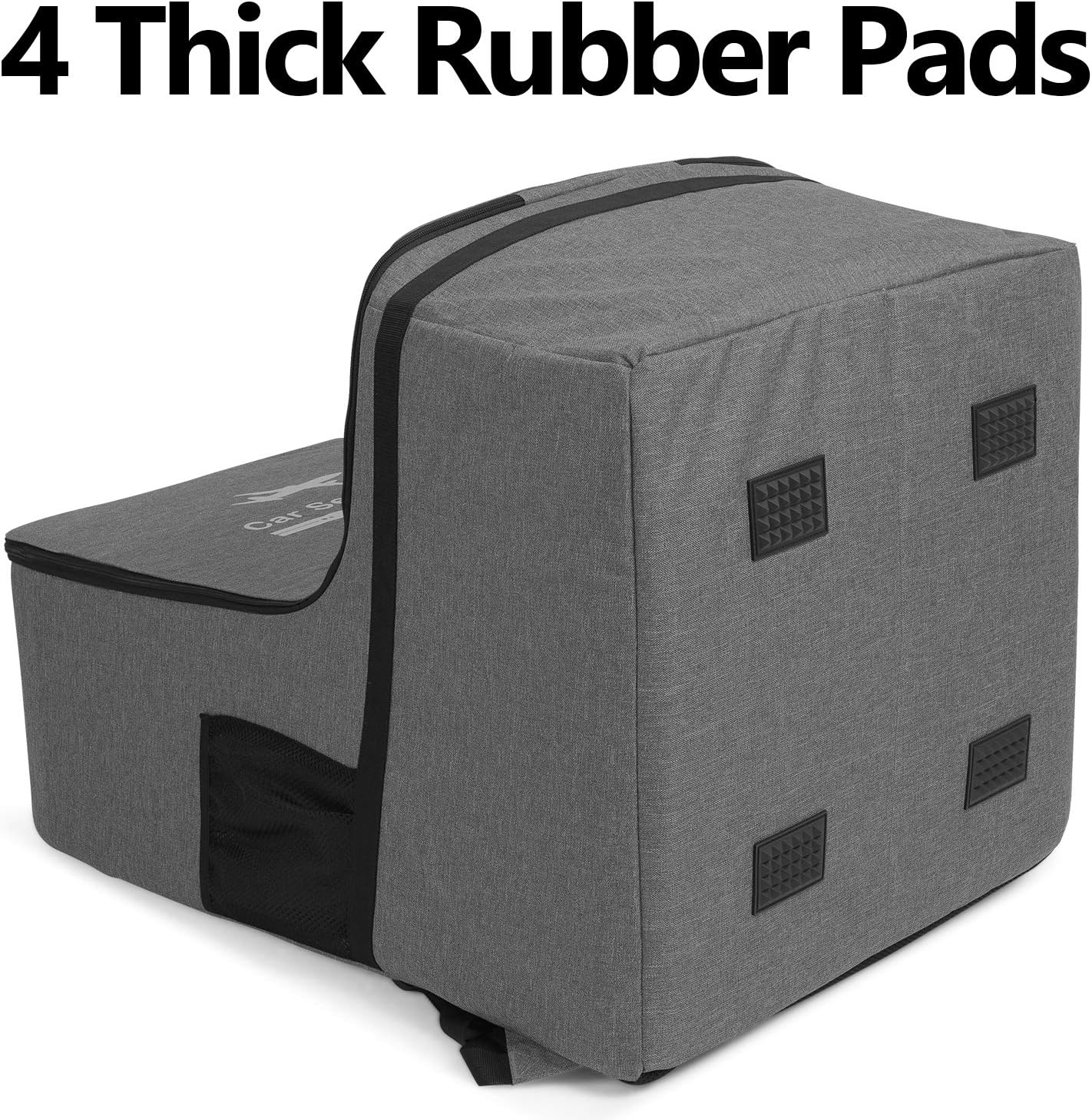 - Keep Car Seat Secure: Thick padding sandwiched between layers of sturdy material, which keeps car seat in good condition. An adjustable strap with buckle in this car seat bag help reduce the risk of bumping and damping. 4 thick rubber pads on the bottom to prevent scraping.