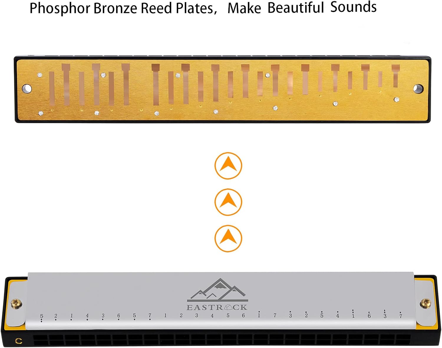 EastRock Blues Harmonica 24 Hole C Key with Case, Mouth Organ Harp, Diatonic Harmonica for Beginner, Adult, Professional, Students, Friends, Gifts