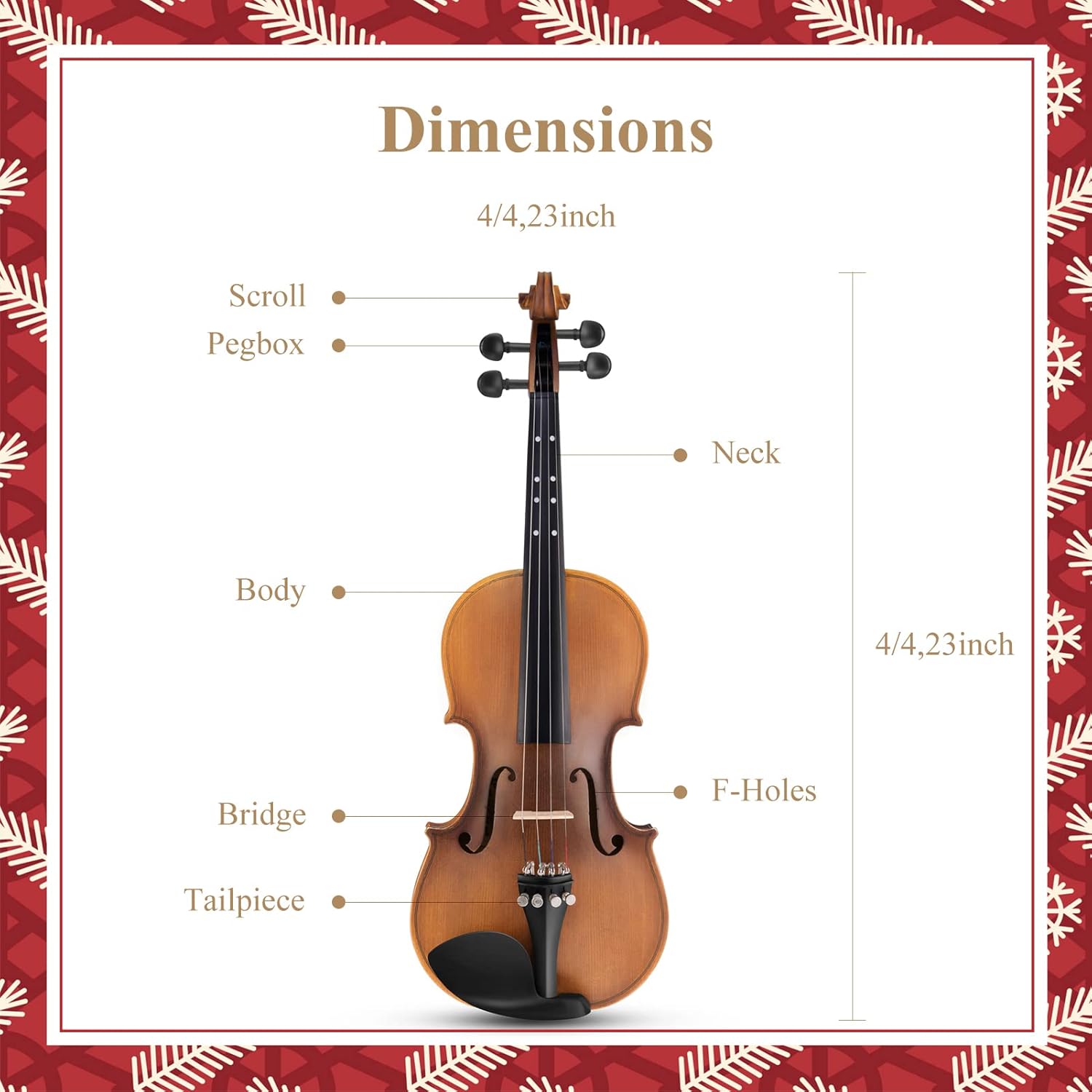 - Maple wood neck, pear-wood finger board, date wood chin rest and tail nail, aluminum alloy strain plate and four integrated fine-tuning tuners.