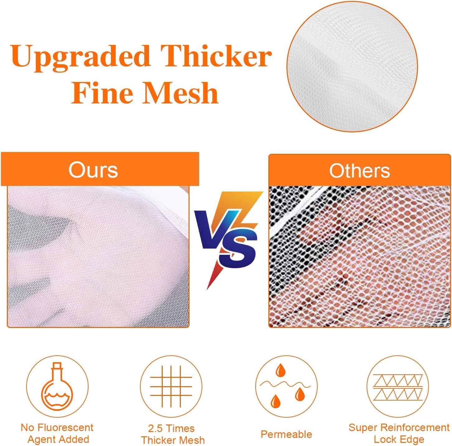 - [Wide Mesh] - With wider fine mesh holes, soap and water flow easily through the mesh for optimal cleaning, your clothes can be washed very clean and dry quickly. Protect your delicates from tangling, snagging, or pulling in washer or dryer.