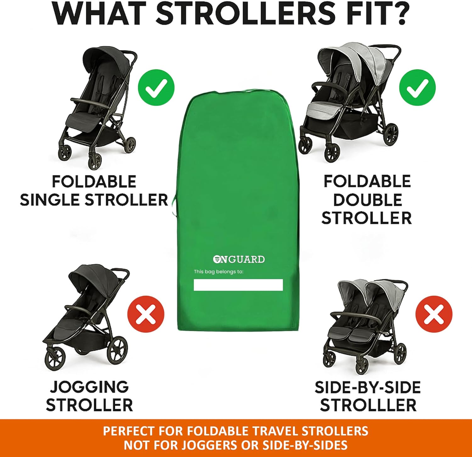 ONGUARD Waterproof Single and Double Stroller Bag for Airplane - Travel Stroller Cover for Air Travel and Storage - Gate Check Bag Backpack- Baby Airplane Essentials - Green