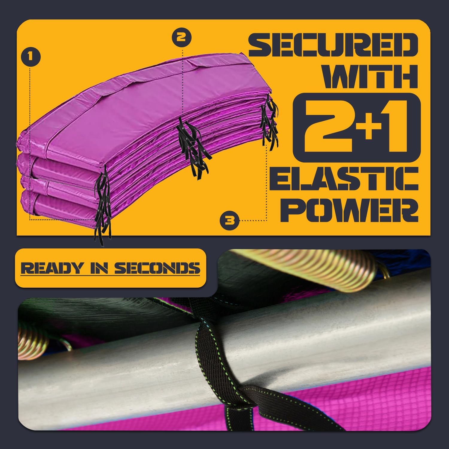 - ⭕️【 UV-Resistant & Weatherproof Trampoline Pad for Long-Lasting Use】Engineered with 2000-hour UV resistance testing, this trampoline cover blocks harmful sun rays & repels water, ensuring year-round outdoor safety. The double-reinforced elastic straps securely wrap around trampoline poles & frames, preventing shifting during play. Ideal as a trampoline mat replacement 15 FT for backyard setups, schools, or recreational centers demanding fade-proof and waterproof protection.Weather resist!