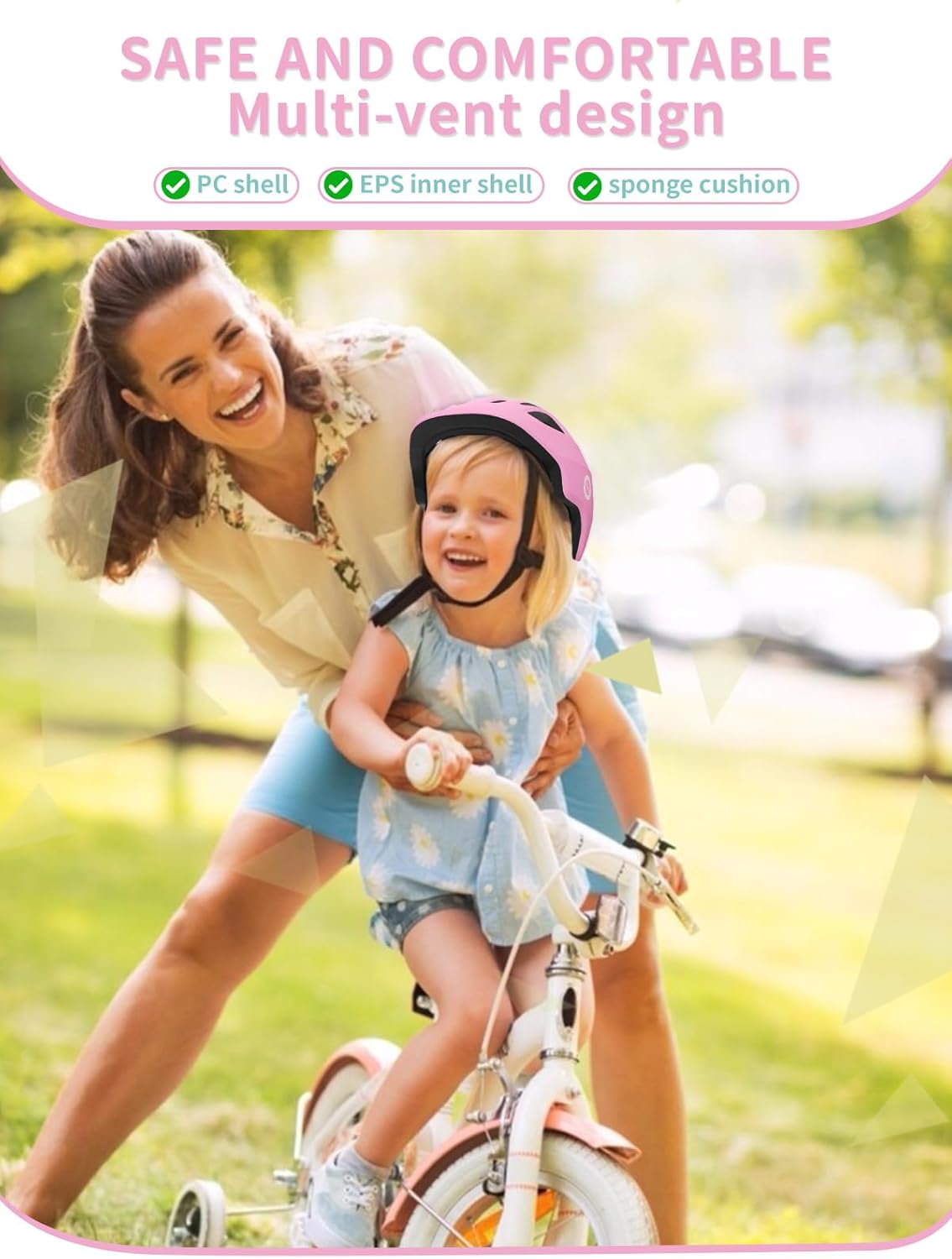 - SAFE AND COMFORT: XJD kids bike helmet equipped with 14 air vents, integrated bug mesh in the front vents that will keep your little rider comfortable of exercise, reduce sweating. It's covered in soft velcro padding that's comfortable for little chins