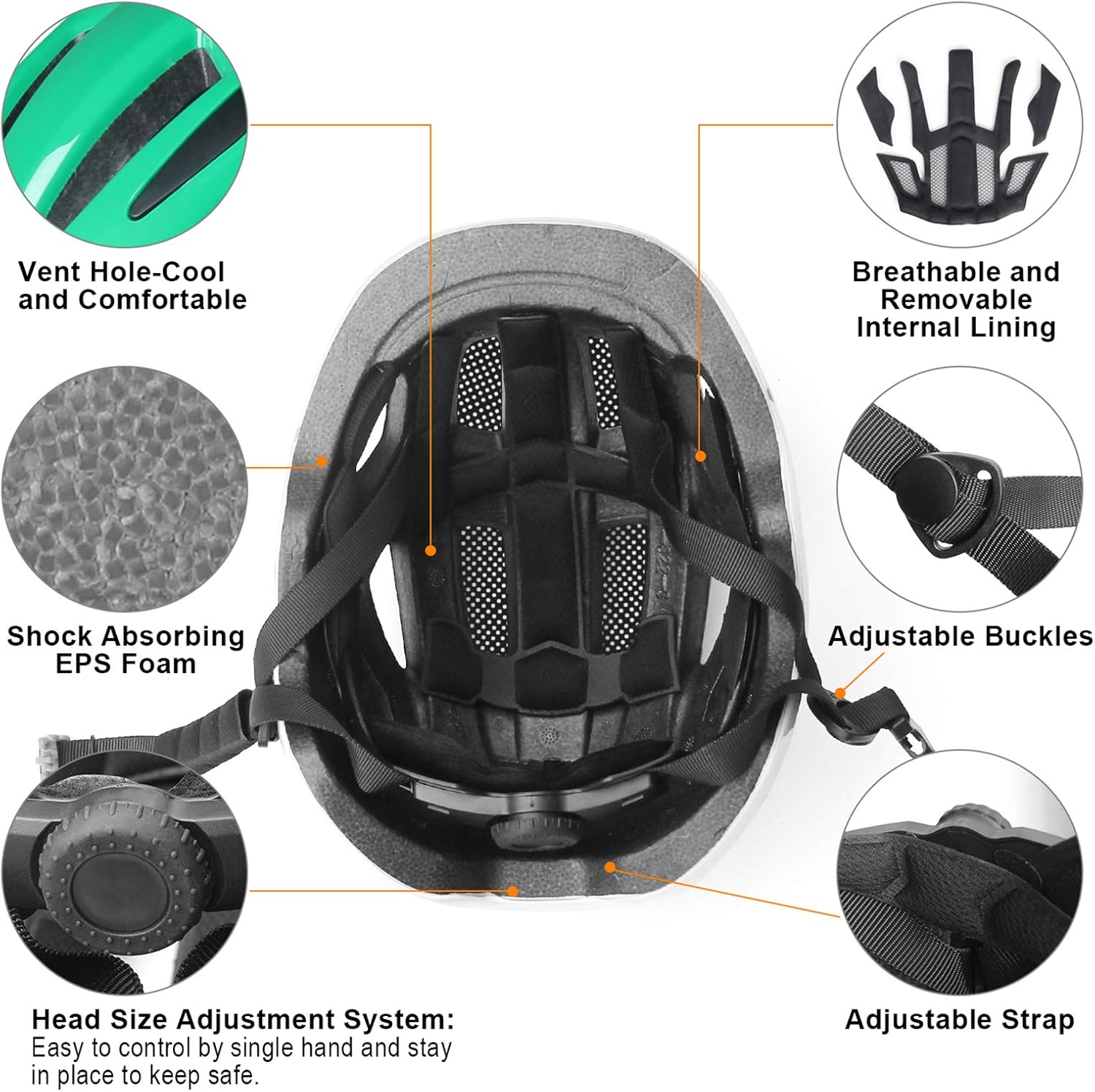 - COOL COMFORTABLE AND BREATHABLE: Our helmet with 14 vents.The ventilation design use special helmet design and breathable foam.This skate helmets help reduce sweating and keep children,men and women feel cool even during intense body movement.And sticky cushiony padding of helmet insert won't cause additional pressure to head.