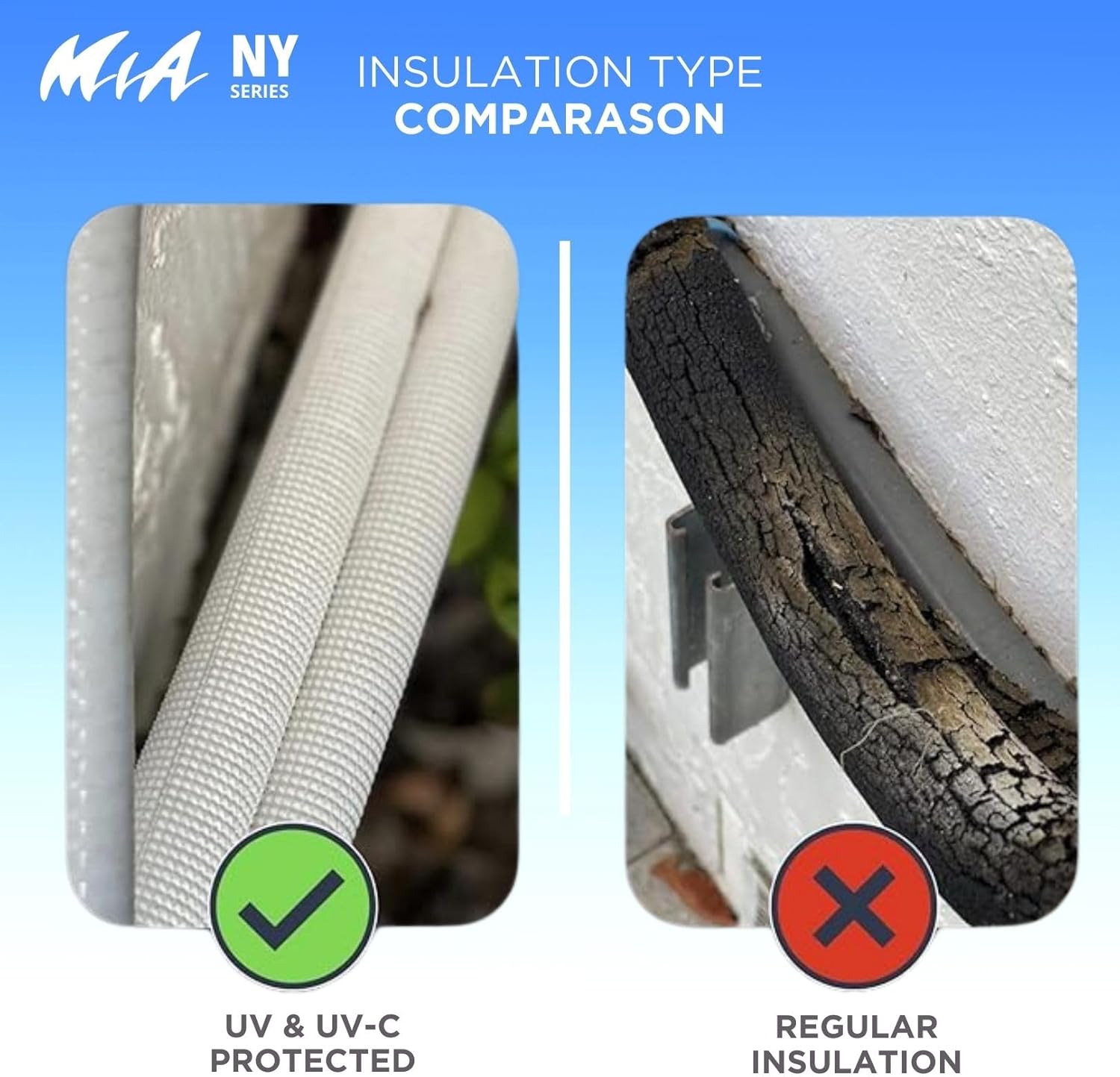 - System comes with an Installation Kit including 16ft Pre-Flared and Insulated Copper Line Set, 16ft Communication Wires between Indoor and Outdoor unit, Small Accessories and a 16ft Drainage Extension. This is not a DIY equipment, professional installation is required.