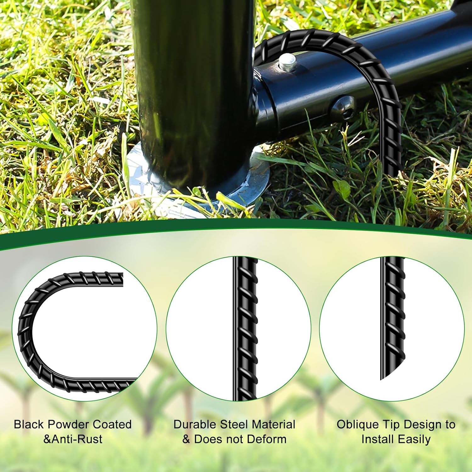 FEED GARDEN 16 Inch 8 Pack Rebar Stakes Heavy Duty J Hook, Galvanized Steel Ground Stakes Tent Stakes Ground Anchors, Chain Link Fence Stakes, Trampoline Stakes, Black