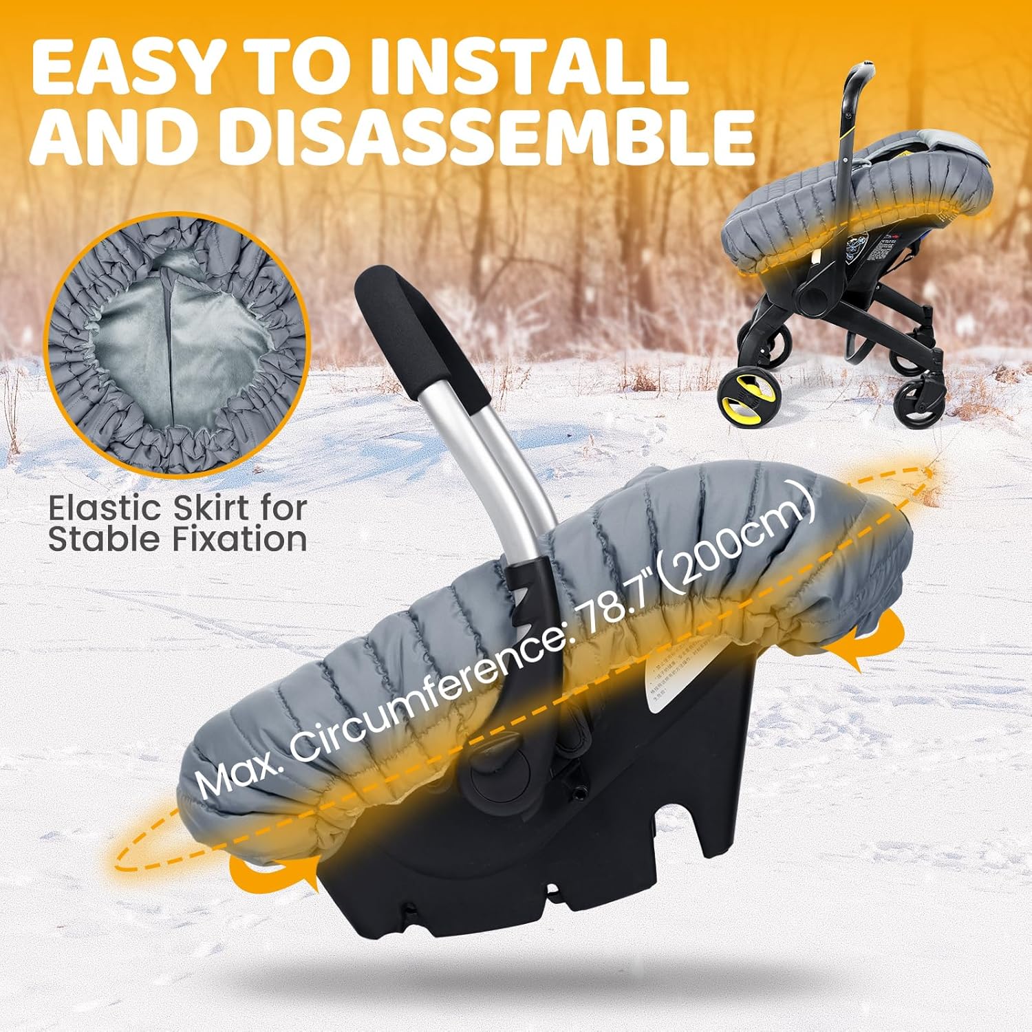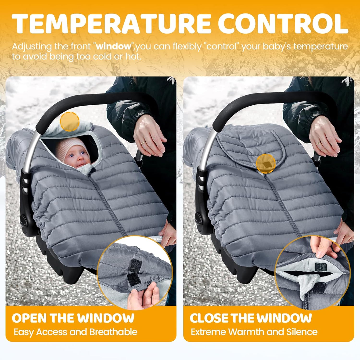Orzbow Winter Car Seat Cover - Baby Car Seat Cocoon Cover for Boys & Girls, Warm Carseat Canopy Cover to Protect Baby from Wind, Rain & Snow, Waterproof, Universal Fit for Infant Car Seat, Grey