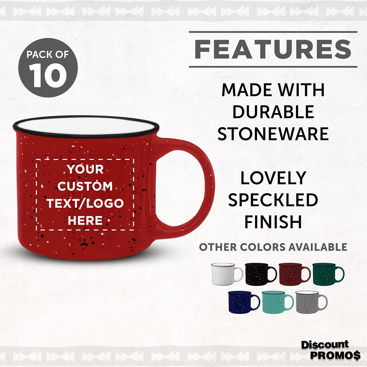 DISCOUNT PROMOS Custom Ceramic Campfire Coffee Mugs 13 oz. Set of 10, Personalized Bulk Pack - Perfect for Tea, Espresso, Cappuccino, Hot Cocoa - Red