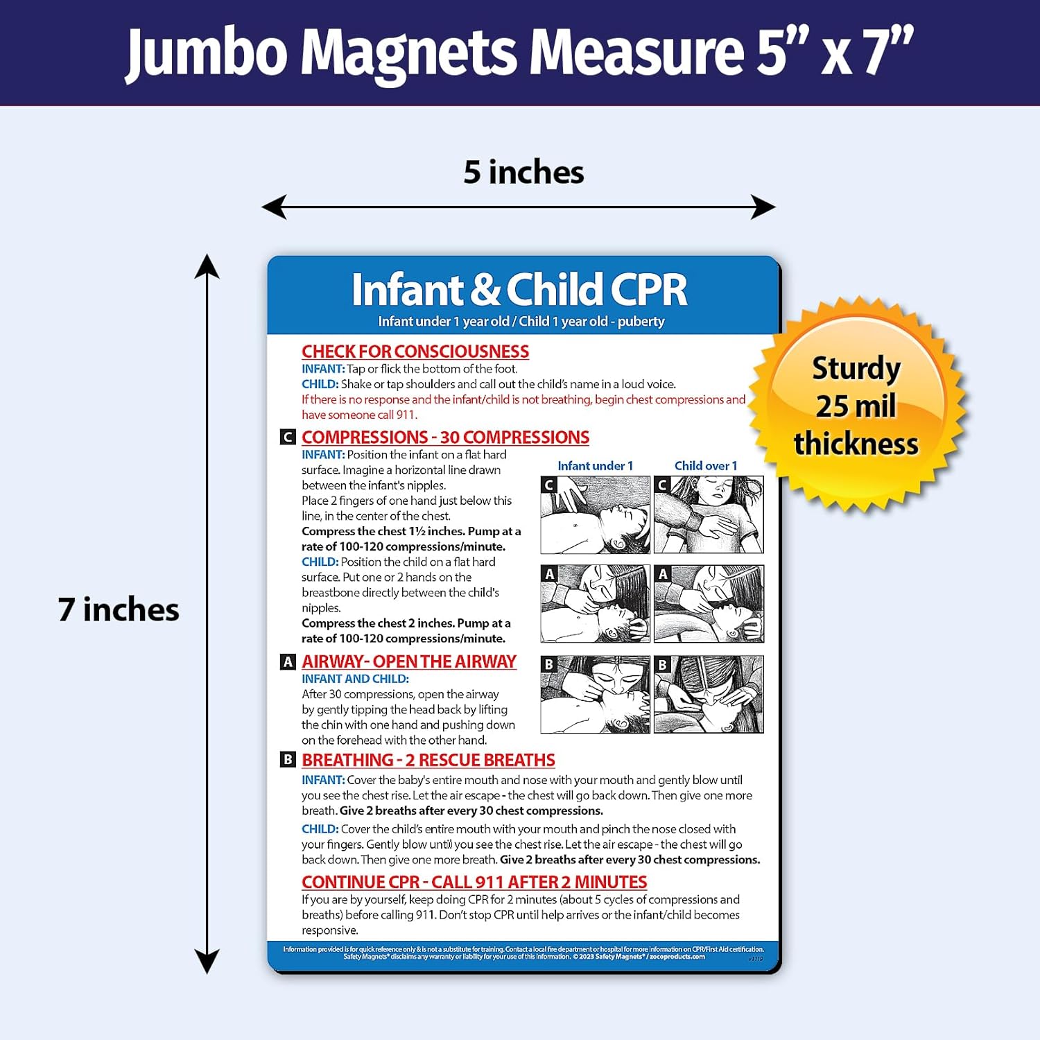 Safety Magnets by ZOCO – Infant and Child CPR Magnet (5-Pack) – 5"x7" Emergency First Aid Guide with Step-by-Step Instructions – CPR Reference for Homes, Daycares, Schools, and Parents
