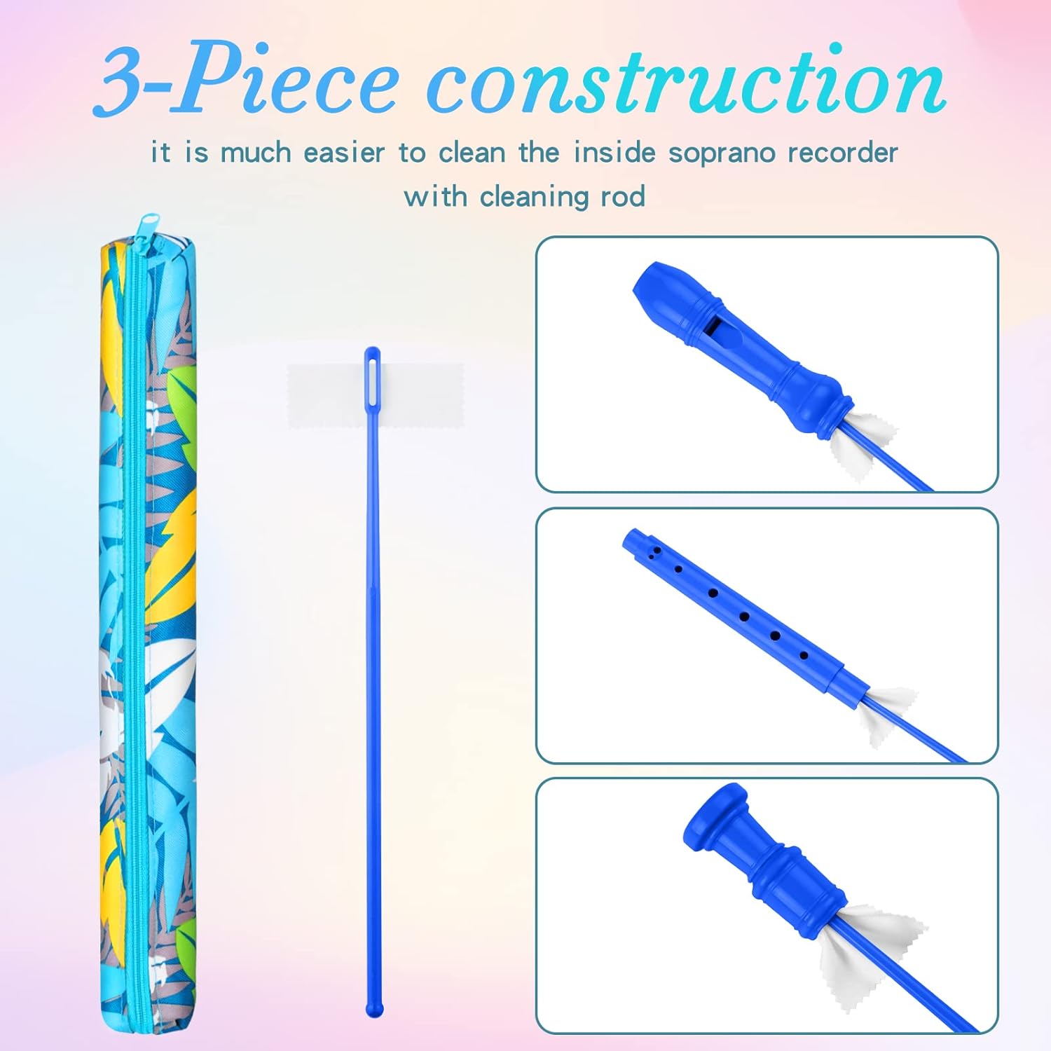 - ♫ Package Contents -- Exquisite packing bag,Soprano Recorder,Fingering Chart, Cleaning Rod, Small wipe.Ours recorder is packed in a storage bag,convenient to carry around it, such as music classes, camping trips, road trips, etc.