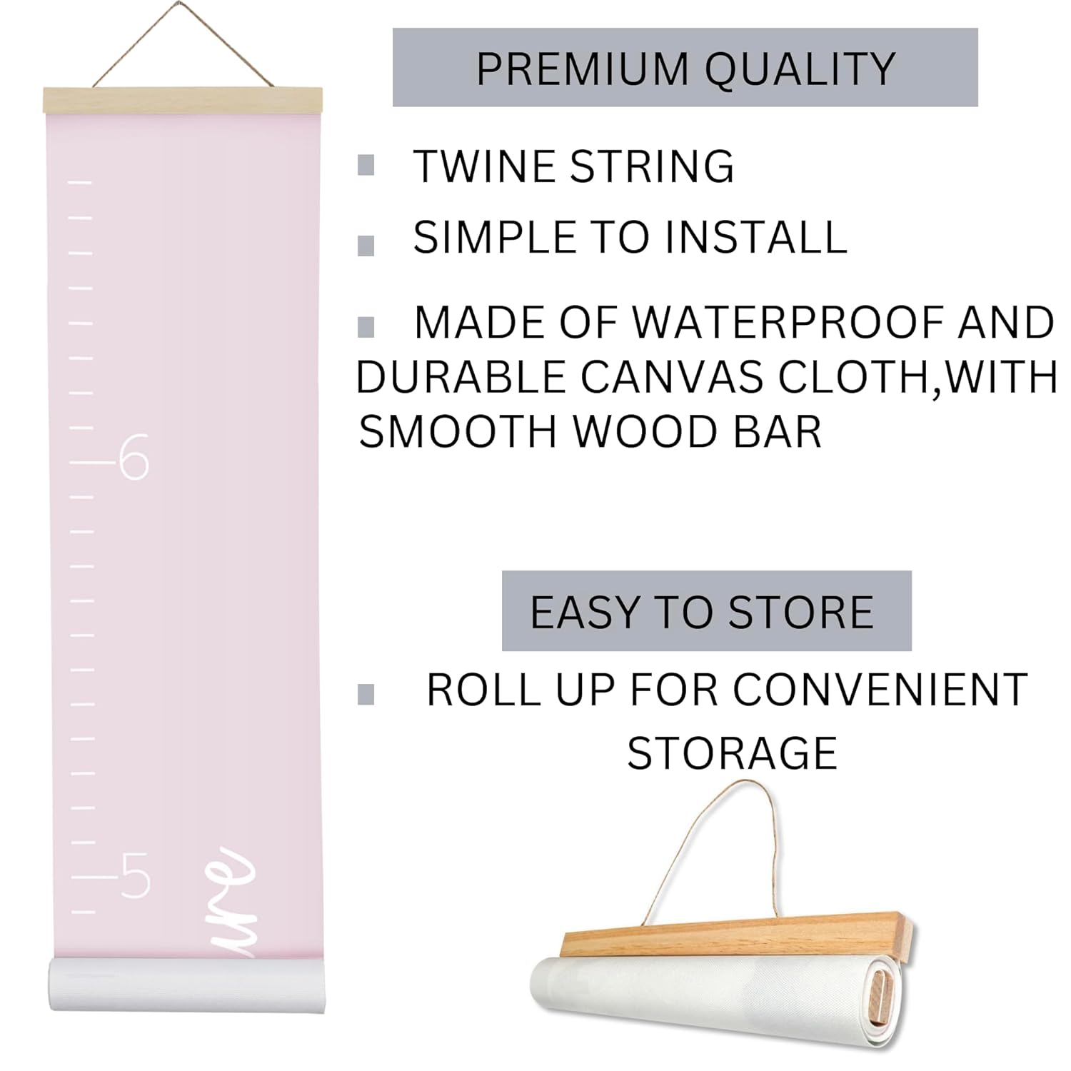 - DURABLE QUALITY FOR CHILD SAFETY: Made of thick stain and water-proof canvas, smooth-polished natural pine, and sturdy hanging string, this kid measuring chart for wall is family safe, non-toxic and eco-friendly; Wear-resistant and prone to deformation, our kid's growth chart ruler will correctly track their development for years to come