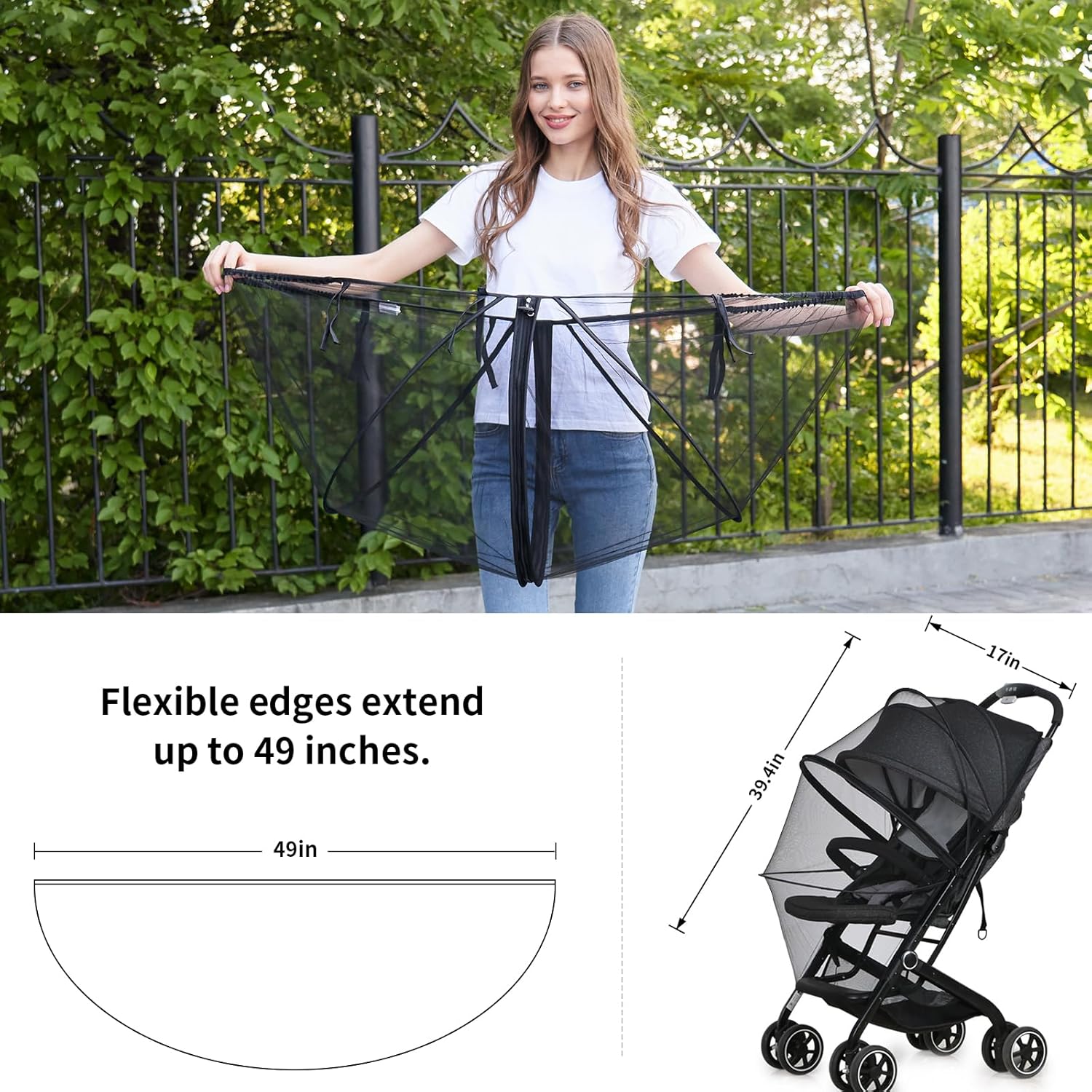 - EASY OPENING AND CLOSING:Stroller bug net cover is two-stage design with high-quality zipper,easy opening and closing.Unlike the traditional version,there is no need to disassemble and install every time,and it will not affect the opening and closing of the stroller