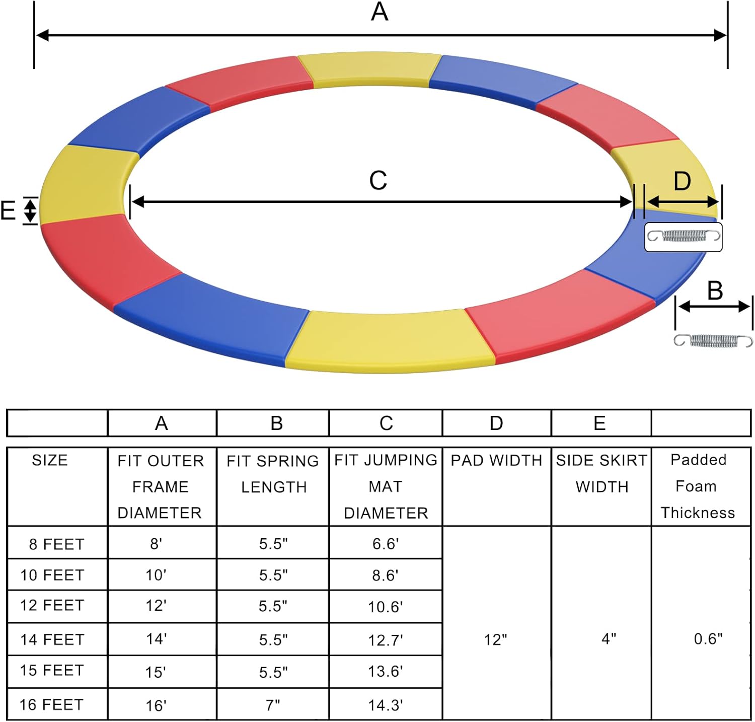 - [ Great Protection & Bouncing Experience ] Our trampoline safety mat can cover the exposed trampoline springs and provide effective cushioning for users. With thick EPE closed-cell foam, it can protect your kids and family from getting injured. Therefore, the user's safety and bounce experience can be effectively guaranteed.