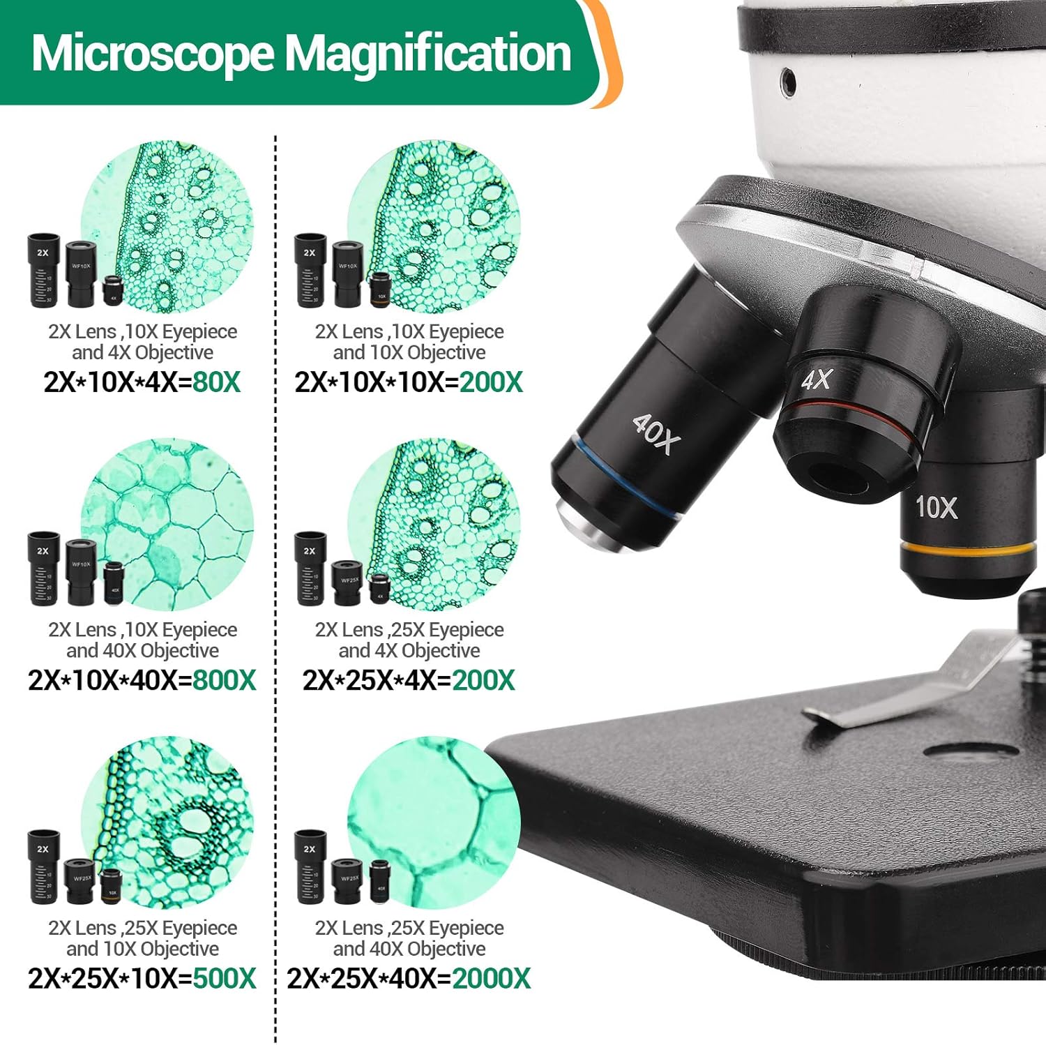- 【Practical Educational Tool】The 40X-2000X biological microscope allows kids, adults, students, beginners, and hobbyists to explore the wonders of life science. Ideal for school labs, one-on-one instruction, or home teaching