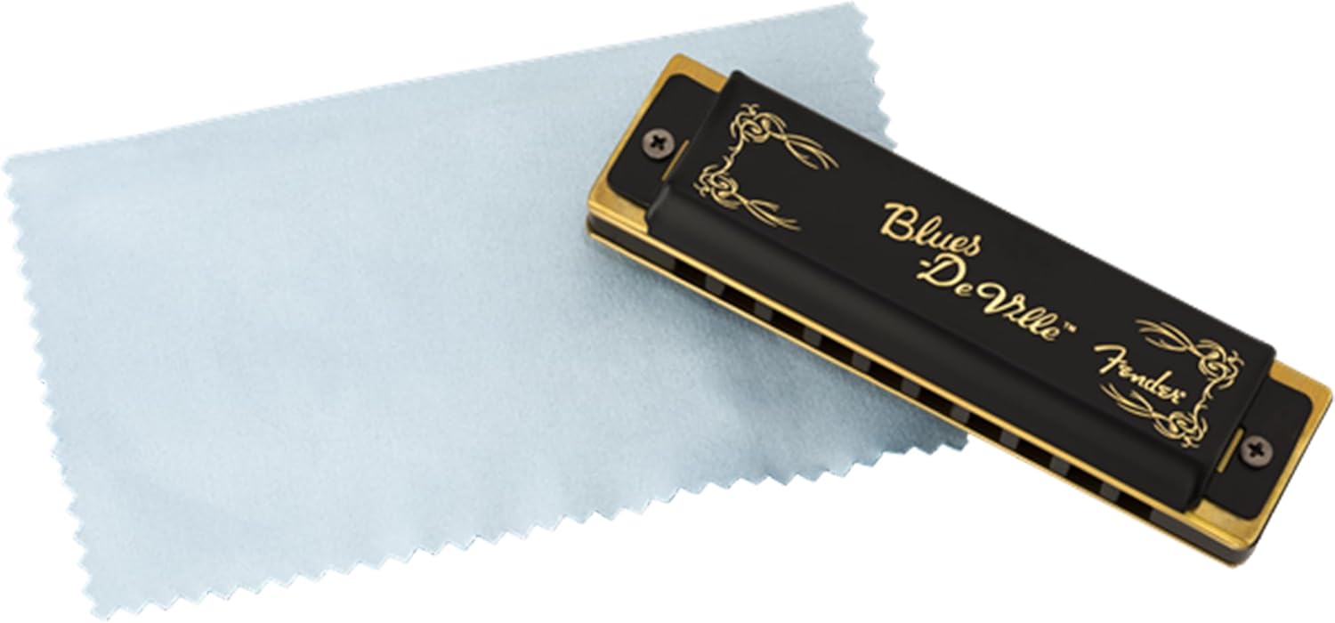 Fender Blues DeVille Harmonica - Key of A Bundle with Carrying Case, Austin Bazaar Online Manual, and Polishing Cloth