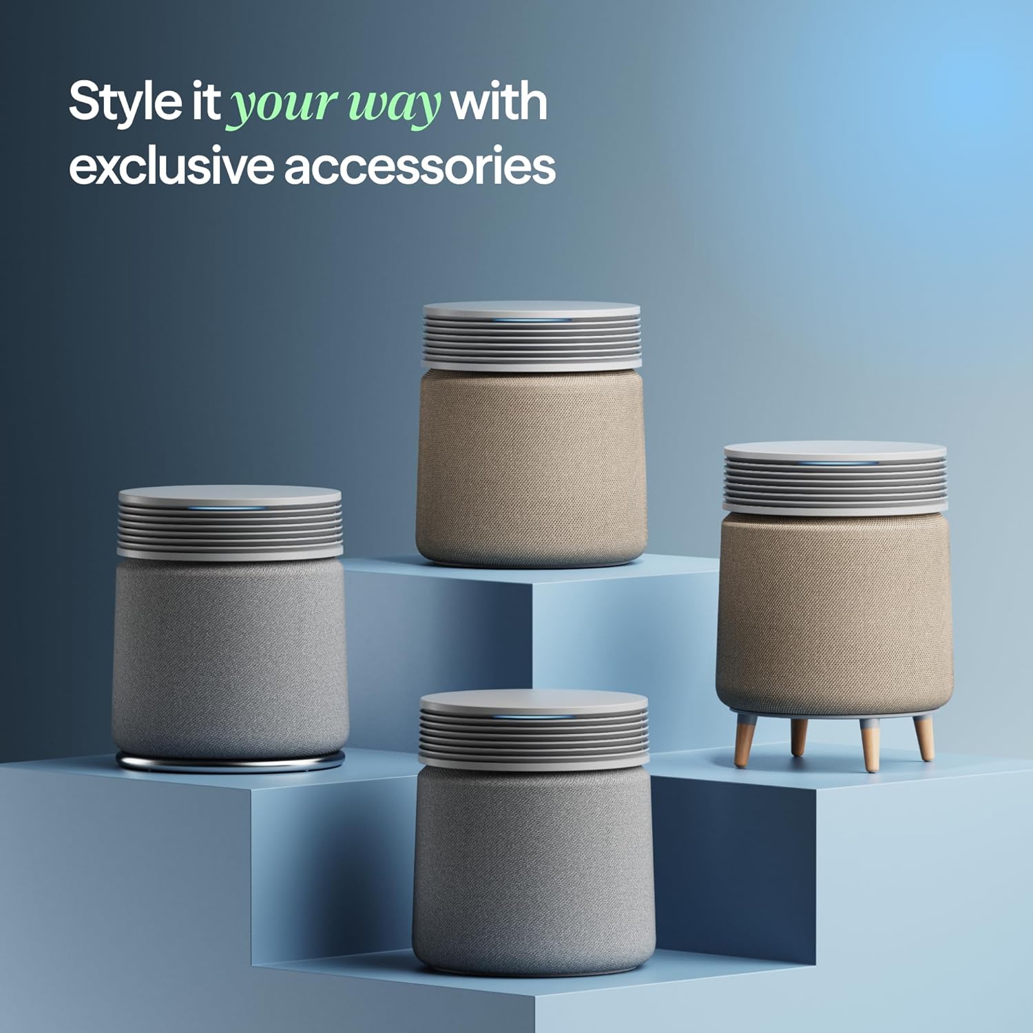 - GLANCEABLE AQI – Discreetly built into the air outlet, the front air quality indicator displays real-time pollution levels with 5 easy-to-read colors—from excellent (blue) to poor (red)—plus a subtle animation when it's actively cleaning.