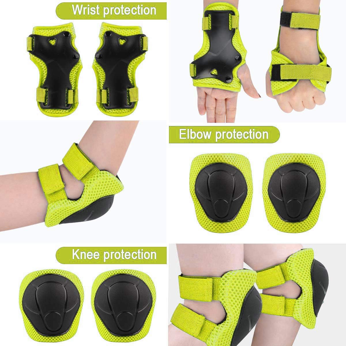 - 【Multifunctional Protective Gear Set】: Superior protection for your child in outdoor skateboarding, biking, roller blading, scooter, ice skating etc, this kids helmet and wrist elbow knee pads keeps him/her safe from bumps and bruises. Package including: 1*helmet, 2*Wrist Pads, 2*Knee Pads, 2*Elbow Pads.