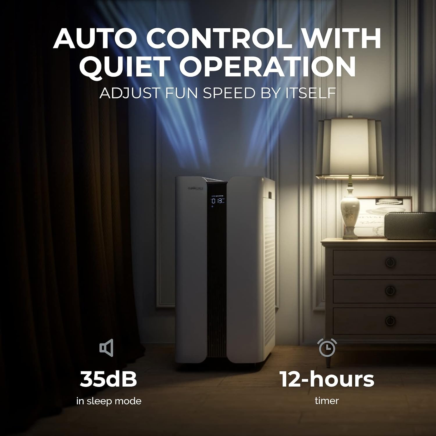 - โ SMART AUTO MODE&QUIET OPERATION: The smart air purifier will adjust its fan speed automatically based on your real-time air quality at the smart mode. Quiet enough to sleep even with such a large CADR - at just 35dB on the lowest setting. Quiet air purifier for bedroom,living room,office, classroom.
